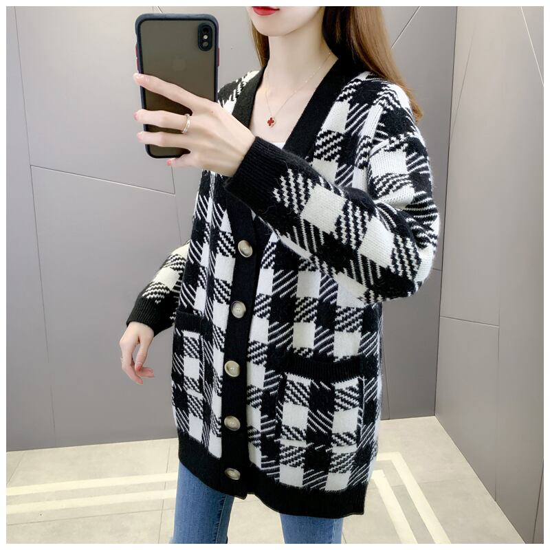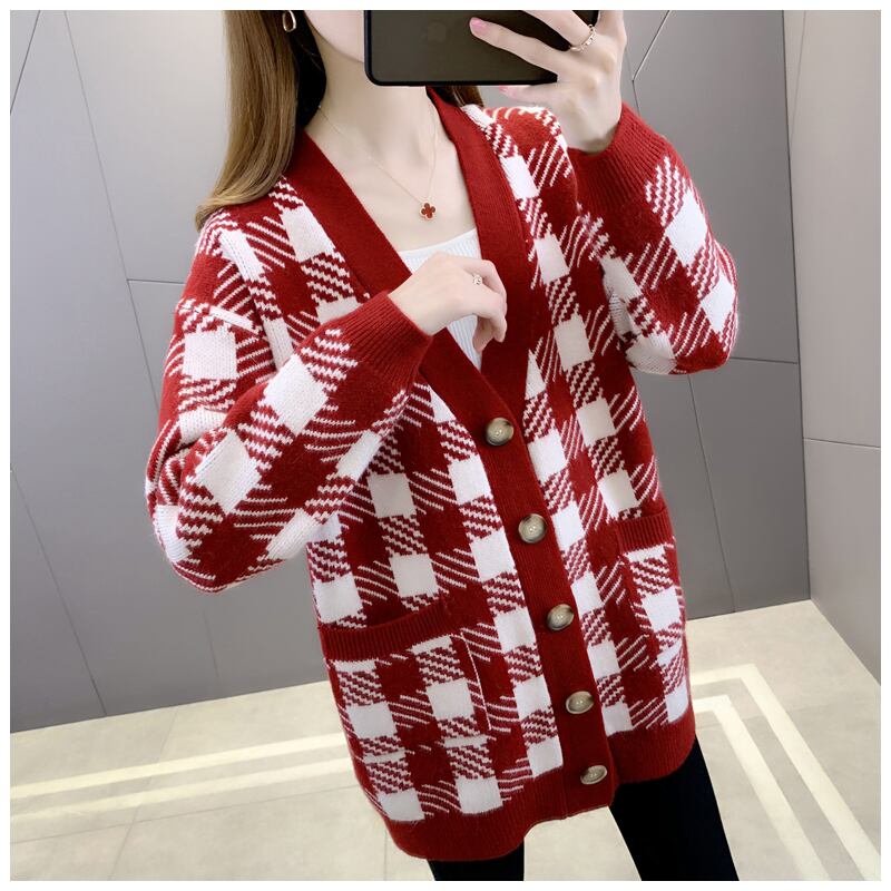 ニット カーディガン 膝上 長袖 チェック 秋 冬 ポケット 前開き かわいい 大人可愛い きれいめ シンプル カジュアル 大人 おしゃれ お洒落 レトロ 大人女子 ラフ モダン 主役級 存在感 襟なし 黒 ブラック 赤 レッド S M L XL 10代 20代 30代 40代 OL 通勤 学生 通学 デート お出かけ 公園デビュー 女子会 お泊まり クリスマス バレンタイン 着回し 普段使い 韓国系 オルチャン ファッション 楽ちん あったか 防寒 モテ 体系カバー 定番 インスタ映え | Rena 韓国ファッション レディースアパレル