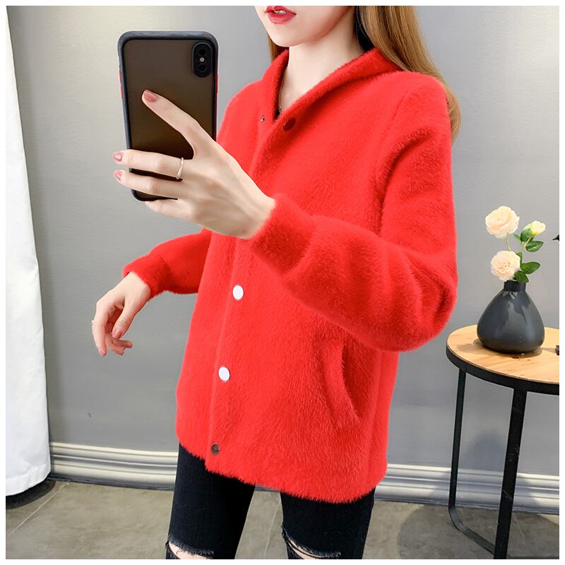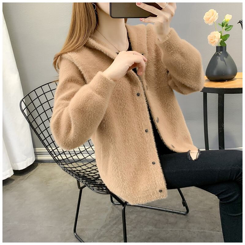 柔らかいフワフワの生地が、着心地抜群のフード付きカーディガンです。