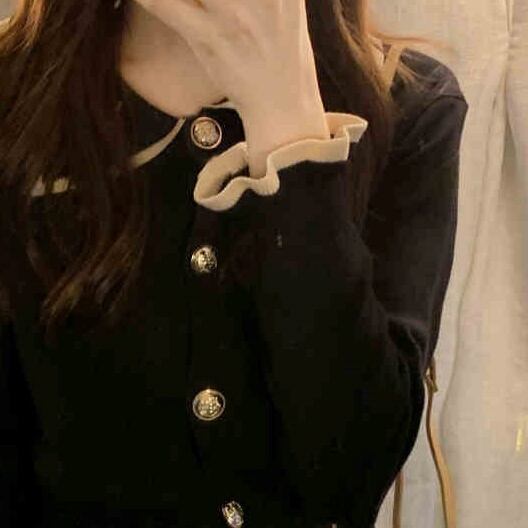 ニット カーディガン 長袖 無地 秋 冬 フリル かわいい 大人可愛い きれいめ 大人 おしゃれ お洒落 レトロ 大人可愛い 大人女子 ガーリー ラウンドネック フレアスリーブ 黒 ブラック 秋カラー S M L XL 10代 20代 30代 オフィス OL 通勤 学生 デート お出かけ 女子会 休日 普段使い ファッション コーデ スタイル モテ | Rena 韓国ファッション レディースアパレル