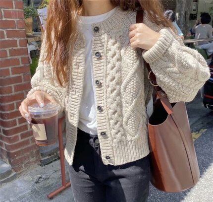 アウター レディース ニット カーディガン 長袖 無地 春 秋 冬 もこもこ 編み込み かわいい 大人可愛い シンプル カジュアル お洒落 かっこいい こなれ感 ラフ キュート ルーズ ラウンドネック ベージュ S M L XL ゆったり 10代 20代 30代 40代 50代 60代 OL 通勤 学生 通学 デート お出かけ 公園デビュー 女子会 休日 着回し 普段使い ファッション コーデ スタイル 楽ちん あったか モテ 定番 ゆったり | Rena 韓国ファッション レディースアパレル