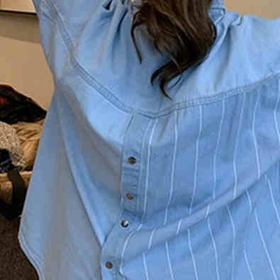 シャツ 長袖 無地 春 秋 冬 バックスリット シンプル カジュアル おしゃれ かっこいい こなれ感 ラフ メンズライク ボーイッシュ スポーティー 青 ブルー 水色 S M L XL 10代 20代 30代 40代 学生 通学 お出かけ 公園デビュー 休日 アウトドア 旅行 着回し 普段使い 重ね着 ファッション コーデ スタイル 体系カバー 脚長 ゆったり | Rena 韓国ファッション レディースアパレル