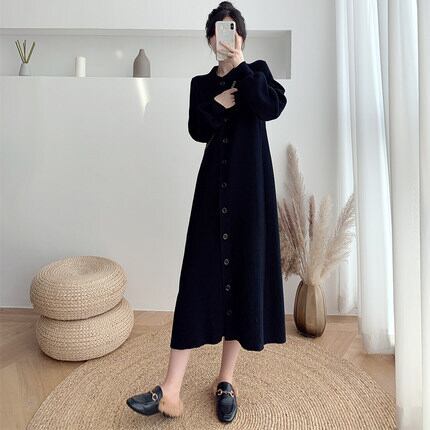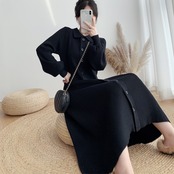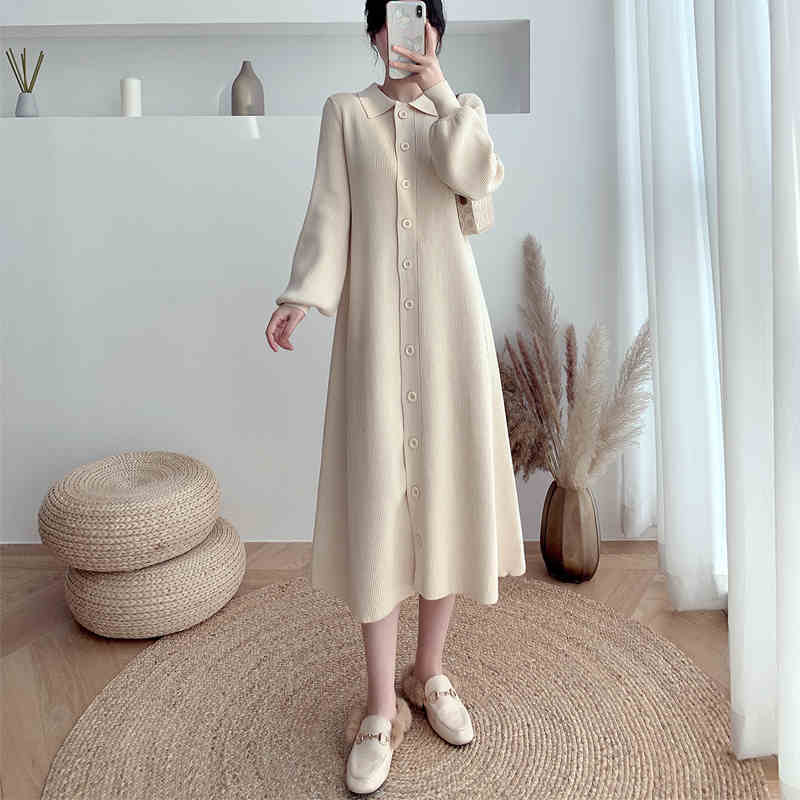 ワンピース Aラインワンピース ロング丈 長袖 無地 春 秋 冬 Aライン かわいい 大人可愛い シンプル カジュアル 大人 上品 おしゃれ お洒落 大人可愛い 大人女子 主役級 存在感 ヘンリーネック ロング ボリューム袖 ニット ホワイト ブラック 10代 20代 30代 OL 通勤 学生 通学 デート お出かけ 女子会 着回し 普段使い ファッション コーデ スタイル モテ インスタ映え | Rena 韓国ファッション レディースアパレル