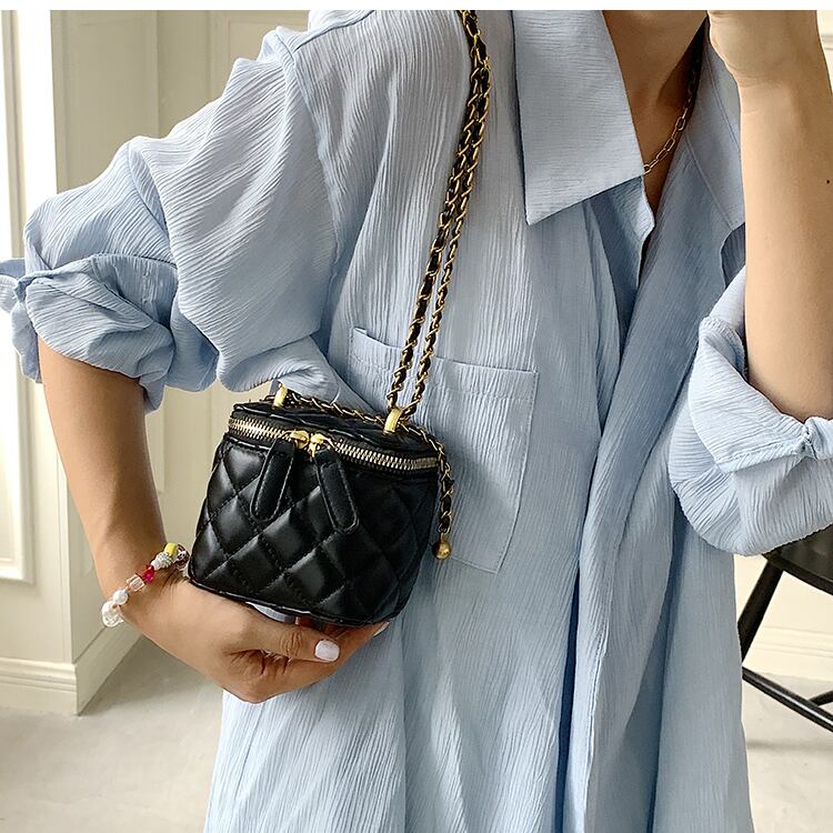 小箱のようなデザインが可愛らしい、チェーンバッグです。