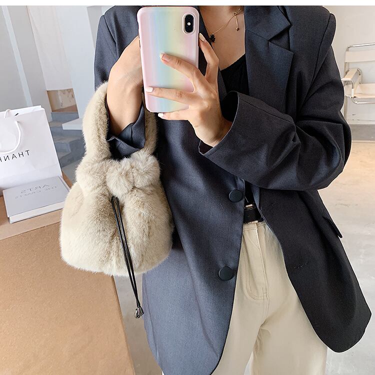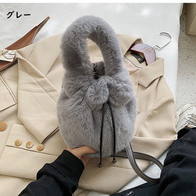 バッグ レディース ショルダーバッグ 無地 巾着 もこもこ モコモコ ふわふわ 斜めがけ 斜め掛け 手持ち ショルダー バック カバン かばん 鞄 レディースバッグ ショルダーバック 斜めがけバッグ ミニバッグ 巾着バッグ ファー エコファー かわいい 大人可愛い きれいめ シンプル 上品 おしゃれ 小さめ ブラック グリーン グレー ベージュ カーキ イエロー ピンク カラバリ 秋 冬 10代 20代 30代 40代 50代 デート お出かけ ファッション プチプラ 送料無料 | Rena 韓国ファッション レディースアパレル