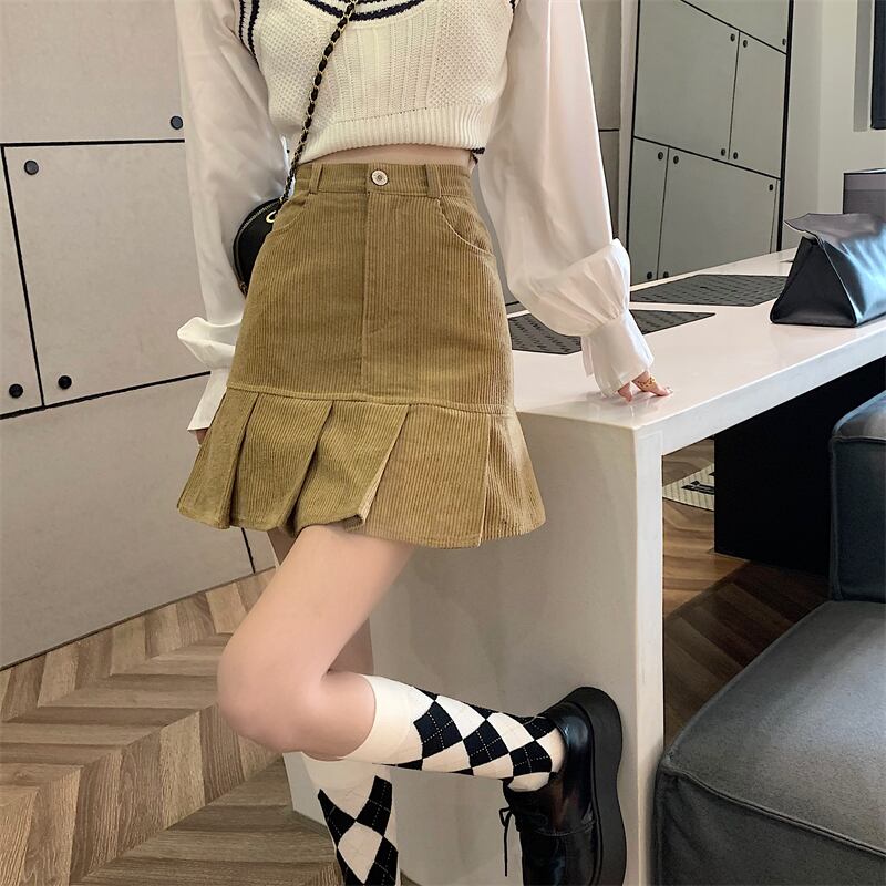 秋冬もショート丈でおしゃれにみせる、プリーツスカートです。