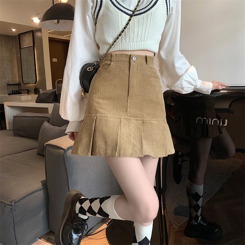 スカート ミニスカート ミニ丈 無地 秋 冬 細身 Aライン ハイウエスト かわいい シンプル カジュアル キュート ガーリー ミニ 黒 ブラック カーキ S M L XL 大きいサイズ 10代 20代 女性用 学生 通学 デート お出かけ 女子会 お泊まり 休日 着回し 普段使い ファッション コーデ モテ 美脚 脚長 プチプラ 送料無料 | Rena 韓国ファッション レディースアパレル