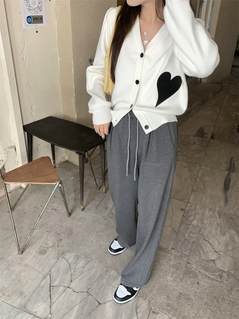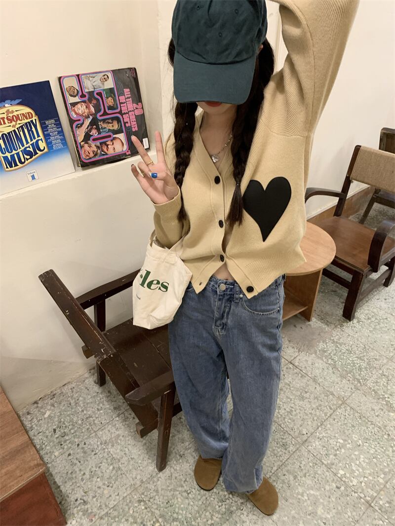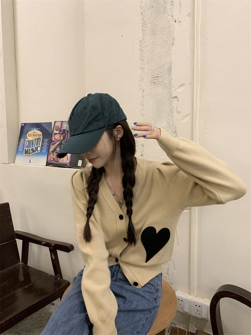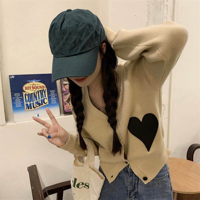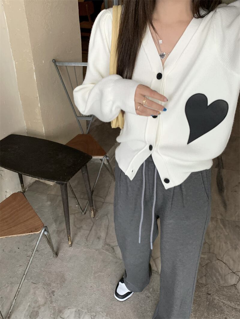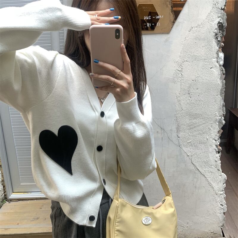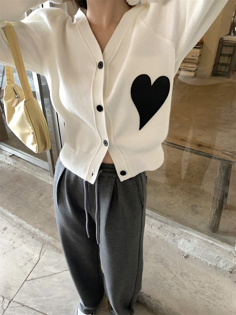 アウター レディース ニット カーディガン 長袖 柄 ハート 冬 Vネック かわいい シンプル カジュアル 上品 おしゃれ かっこいい 大人女子 こなれ感 ラフ ボーイッシュ ガーリー 白 ホワイト 黒 ブラック デート お出かけ 公園デビュー 女子会 アウトドア イベント | Rena 韓国ファッション レディースアパレル