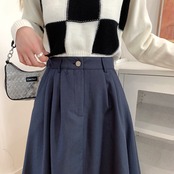 ハイウエストでおしゃれに見える、Aラインのプリーツスカートです。