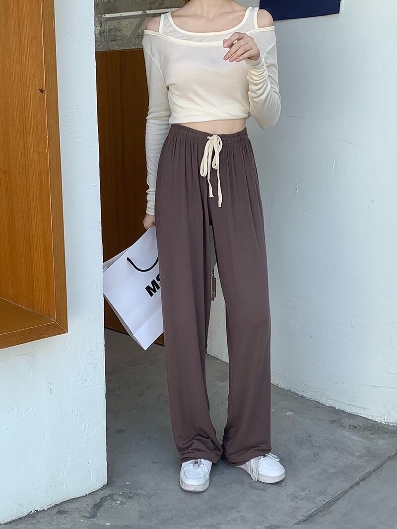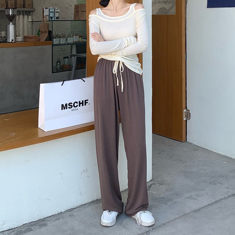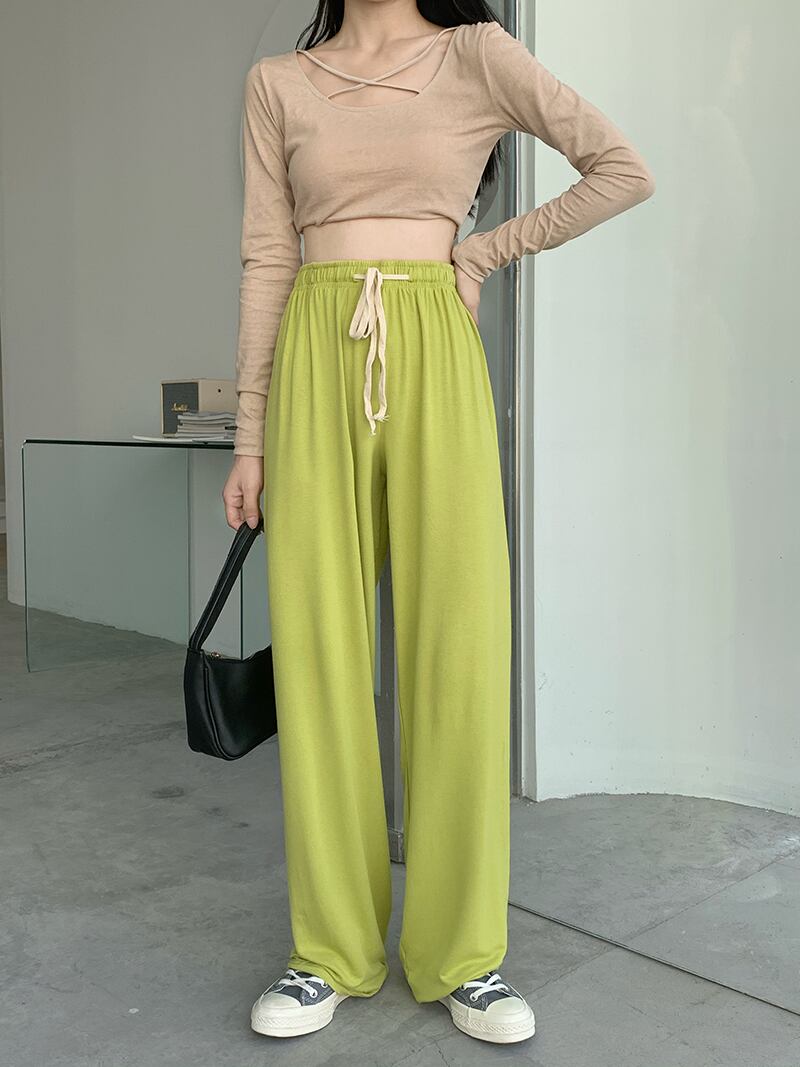パンツ レディース サルエルパンツ カラーパンツ 無地 春 秋 ストレート ウエストゴム ハイウエスト シンプル カジュアル かっこいい ラフ スポーティー スウェット 黒 ブラック 緑 グリーン 紫 パープル 灰色 グレー 10代 20代 30代 40代 50代 60代 お出かけ 公園デビュー 休日 運動 楽ちん | Rena 韓国ファッション レディースアパレル
