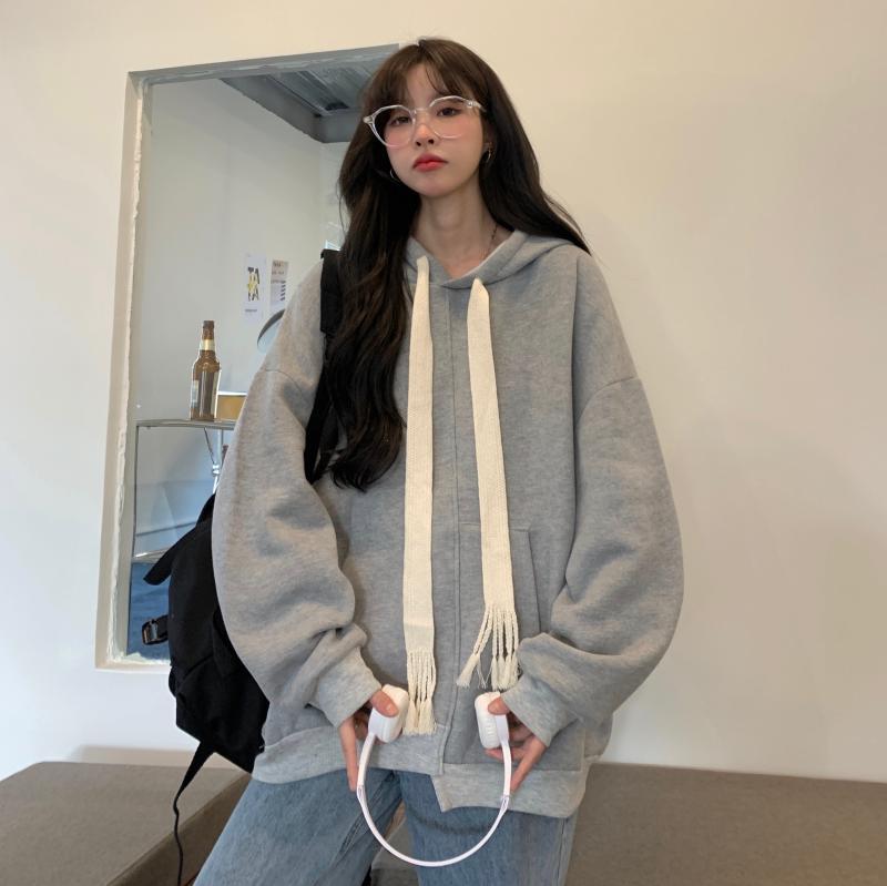 パーカー 長袖 無地 秋 冬 リボン フード付き シンプル カジュアル かっこいい ラフ マニッシュ ボーイッシュ スポーティー ルーズ ブルー 緑 グリーン 灰色 グレー ピンク ネイビー M L XL 大きめ ゆったり ゆる 10代 20代 30代 40代 50代 60代 デート お出かけ 公園デビュー 女子会 お泊まり アウトドア 普段使い 楽ちん | Rena 韓国ファッション レディースアパレル