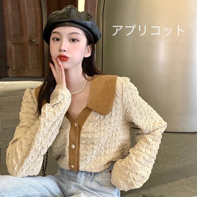 シャツ 長袖 無地 秋 冬 スリム 細身 前開き かわいい カジュアル おしゃれ お洒落 レトロ こなれ感 ラフ 個性的 モード系 モダン Vネック 襟付き 萌袖 ブラウン アプリコット フリーサイズ 10代 20代 女性用 デート お出かけ 女子会 休日 クリスマス バレンタイン 着回し 普段使い 重ね着 お揃い 双子 韓国 韓国系 ファッション コーデ スタイル | Rena 韓国ファッション レディースアパレル
