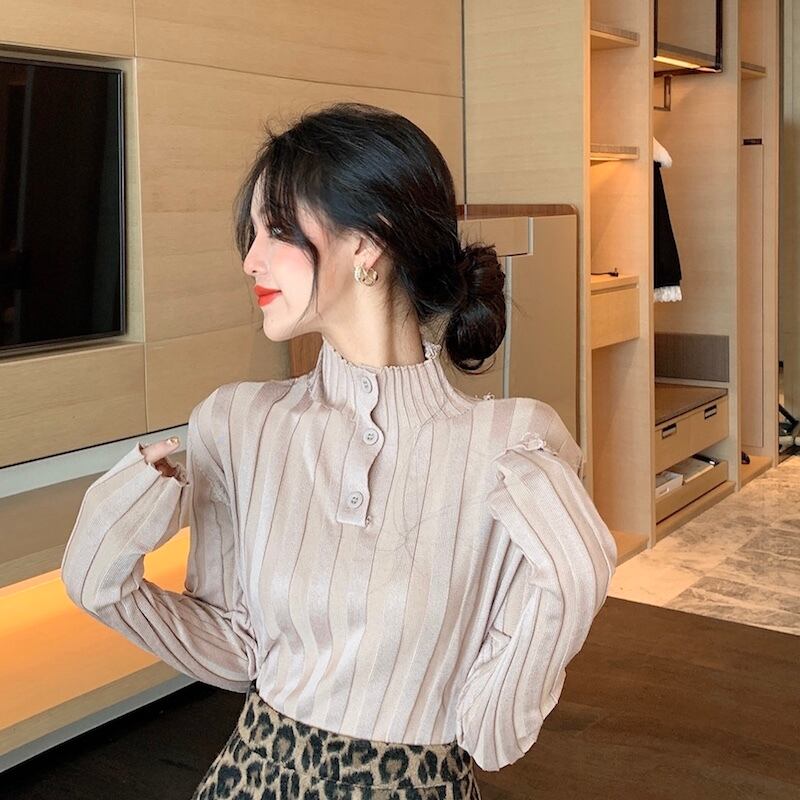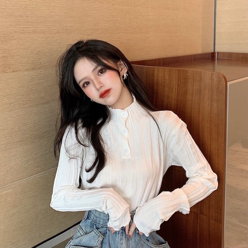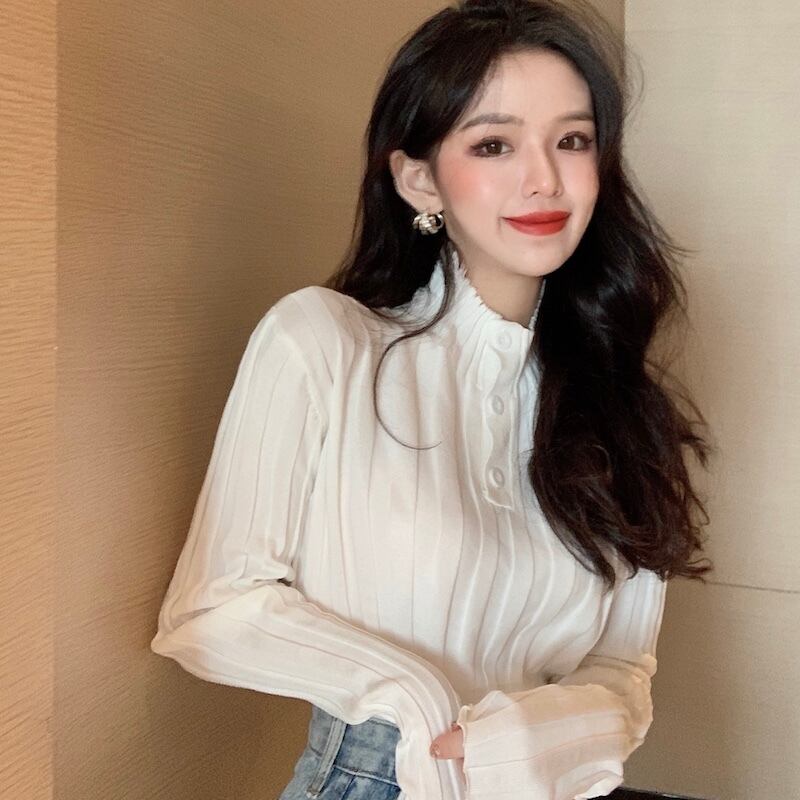 ニット セーター 長袖 無地 秋 冬 スリム タイト 細身 フリル リブ リブニット 大人可愛い きれいめ シンプル 大人 上品 おしゃれ お洒落 レトロ ラブリー キュート ガーリー エレガント モダン ハイネック フレアスリーブ 萌袖 ニット ホワイト ブラック ベージュ フリーサイズ 10代 20代 30代 40代 50代 60代 女性用 オフィス ビジネス OL 通勤 デート お出かけ 女子会 休日 着回し 普段使い 重ね着 ファッション コーデ スタイル | Rena 韓国ファッション レディースアパレル