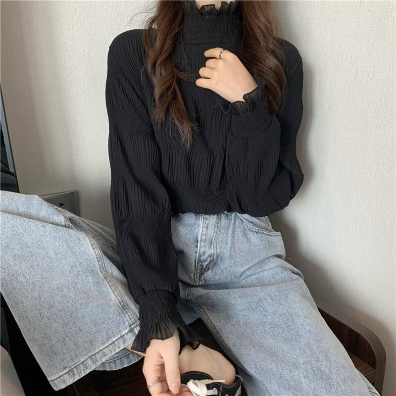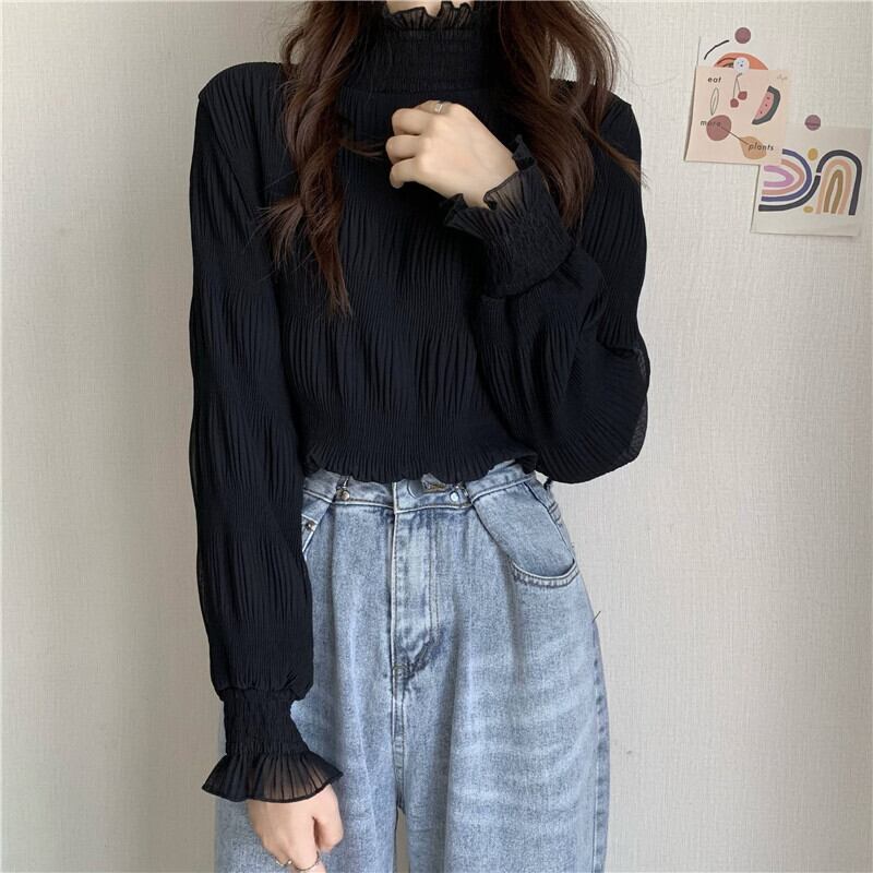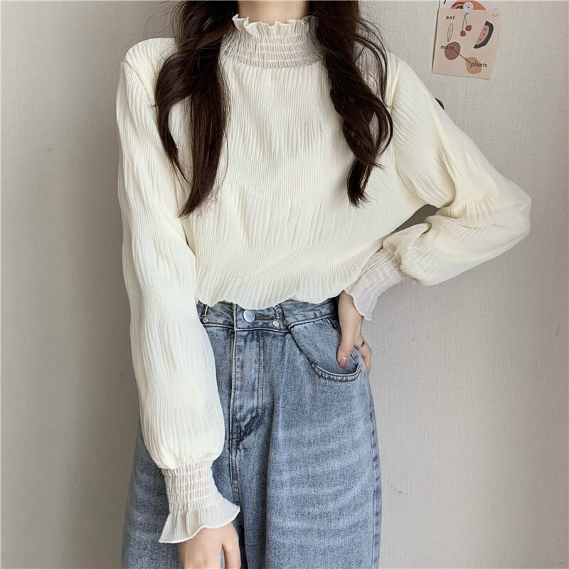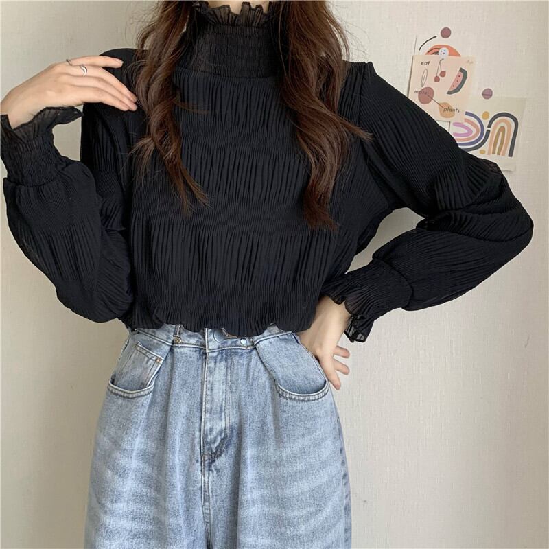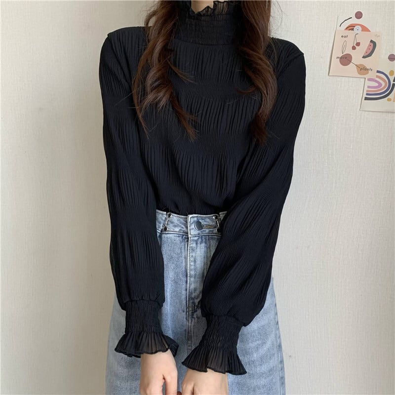 ブラウス カットソー 長袖 無地 春 秋 冬 細身 レース かわいい 大人可愛い きれいめ シンプル 大人 上品 おしゃれ 大人女子 とろみ感 ハイネック 白トップス 白 ホワイト 黒 ブラック フリーサイズ ゆったり 10代 20代 30代 40代 オフィス ビジネス OL 通勤 学生 通学 デート お出かけ 女子会 着回し 普段使い 重ね着 オルチャン ファッション コーデ スタイル プチプラ 送料無料 | Rena 韓国ファッション レディースアパレル