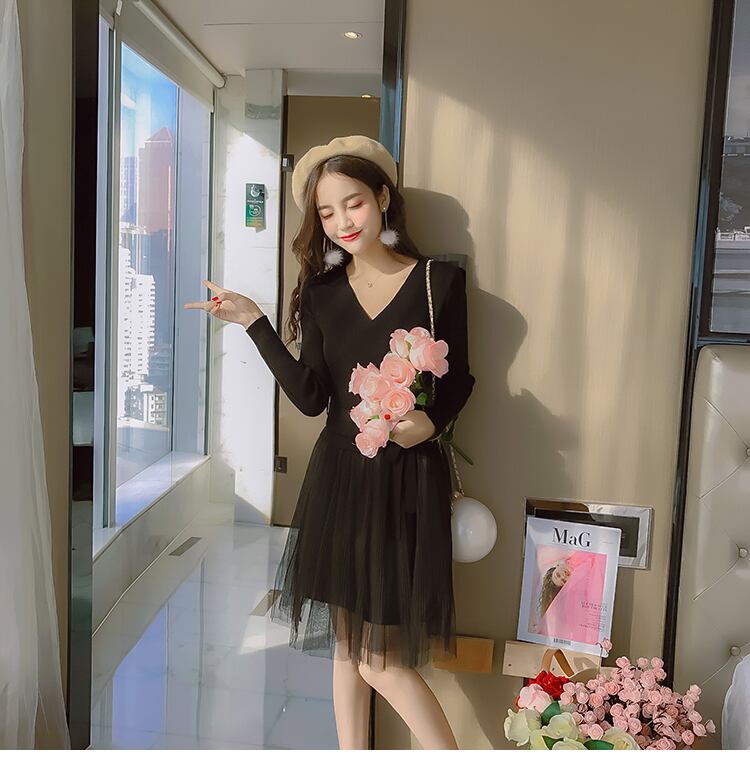 ワンピース Aラインワンピース 膝丈 長袖 秋 冬 Aライン レース ウエストリボン 透け感 かわいい 大人可愛い きれいめ シンプル カジュアル 大人 上品 おしゃれ 大人女子 こなれ感 ラブリー キュート ガーリー エレガント Vネック ひざ丈 袖あり ブラック ベージュ 大人カラー S M L XL 10代 20代 30代 40代 50代 OL 通勤 学生 通学 デート お出かけ 女子会 休日 パーティー ファッション コーデ スタイル モテ 送料無料 | Rena 韓国ファッション レディースアパレル