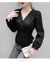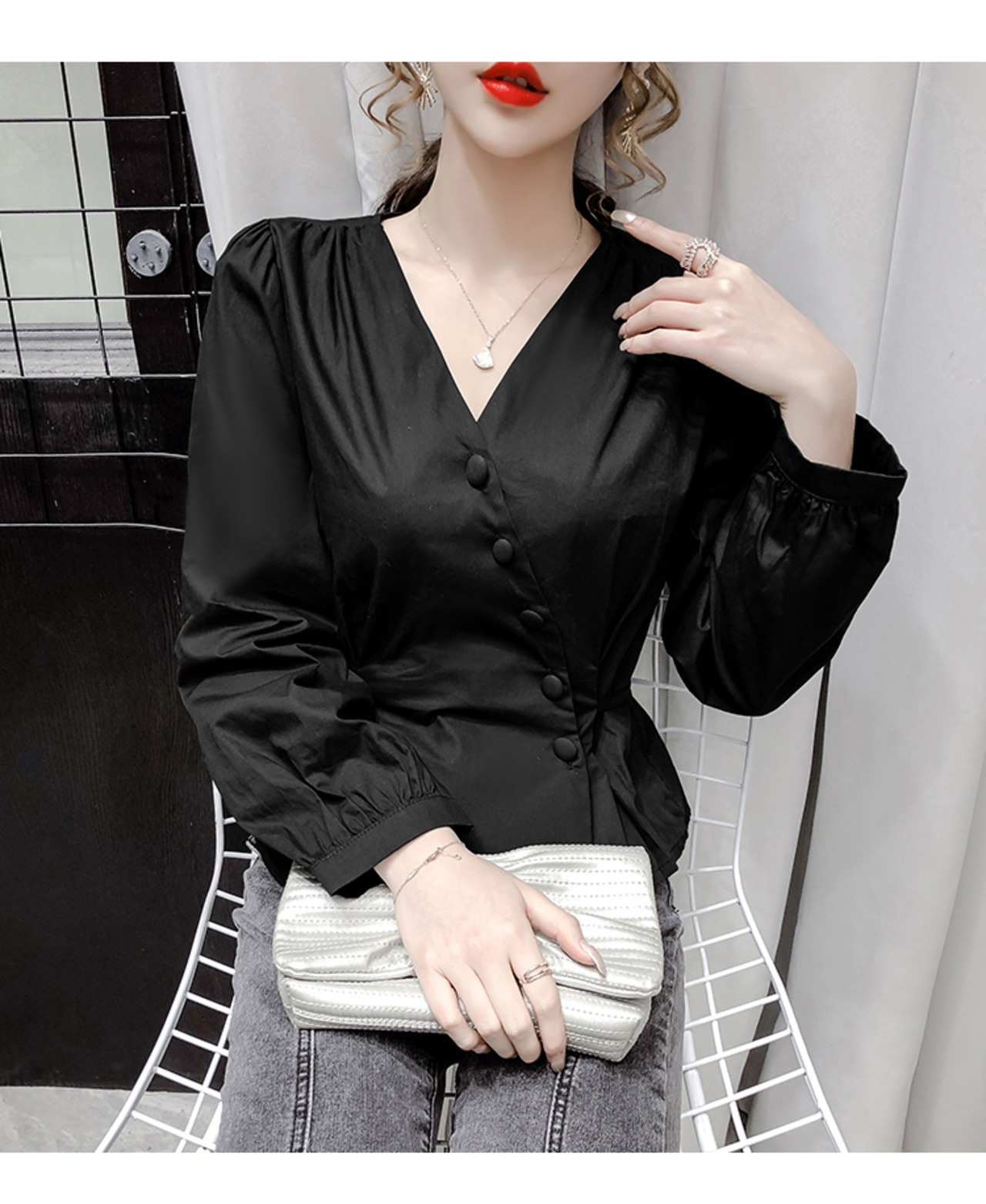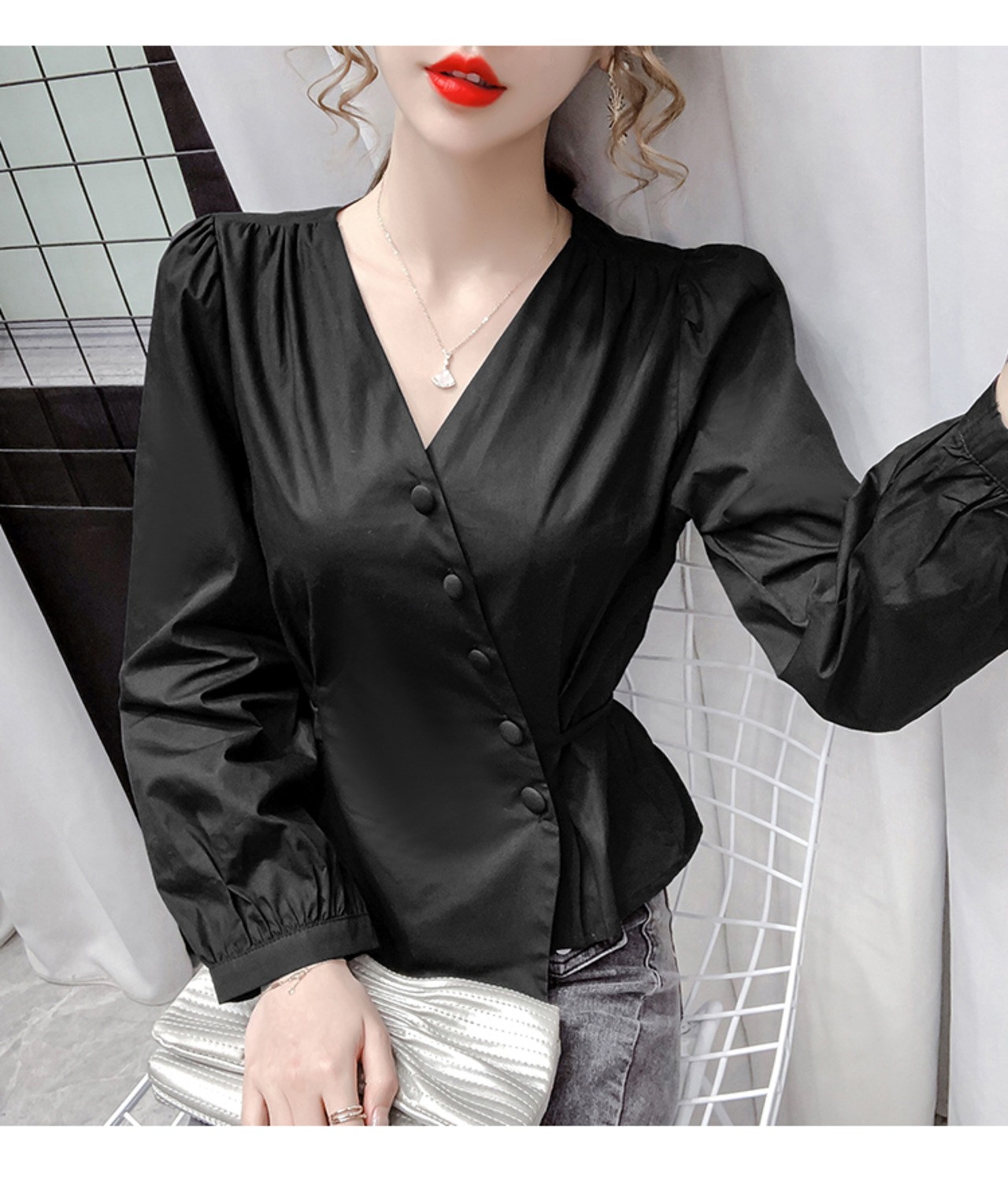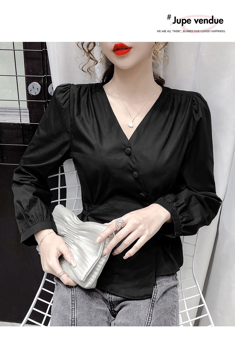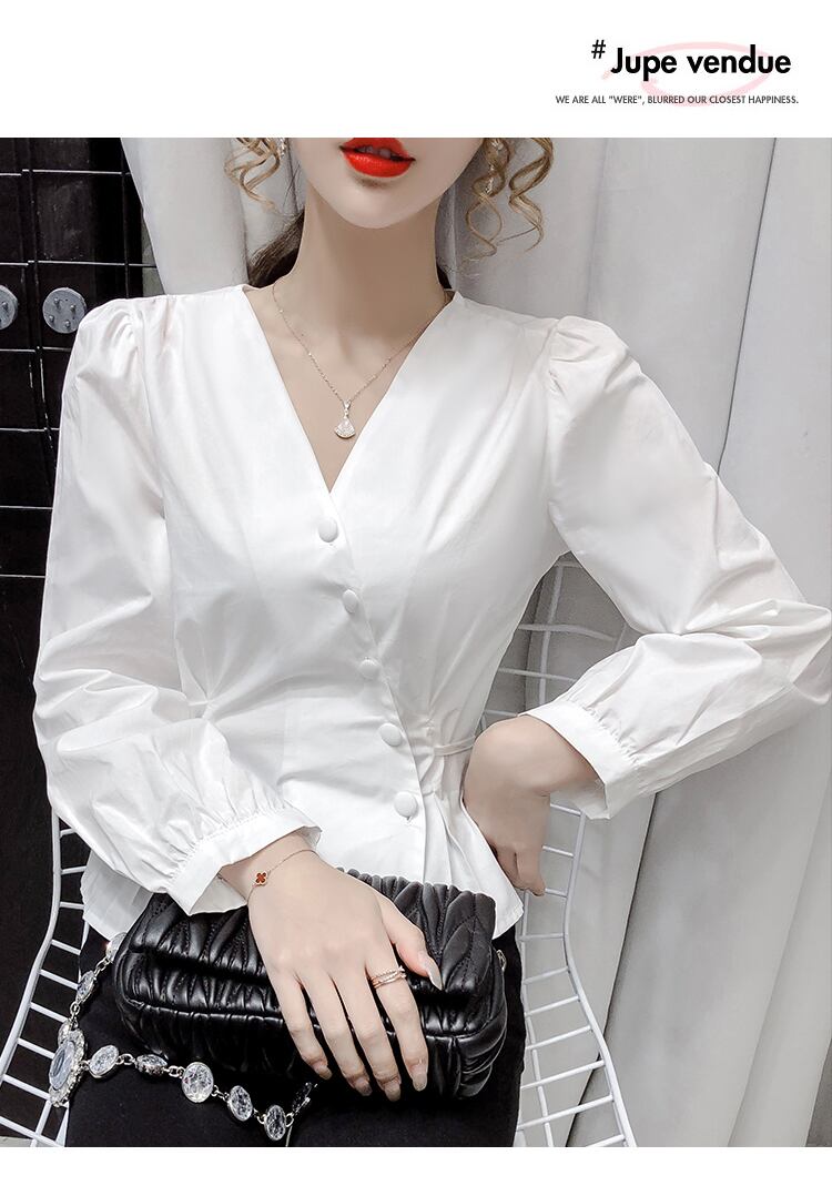 シャツ ブラウス 長袖 無地 春 秋 冬 スリム タイト 細身 ウエストマーク きれいめ シンプル 大人 上品 おしゃれ かっこいい 大人女子 存在感 Vネック 袖あり 白シャツ 白 ホワイト 黒 ブラック S M L XL 大きいサイズ 20代 30代 40代 50代 オフィス ビジネス OL 通勤 デート 女子会 ファッション スタイル プチプラ 送料無料 | Rena 韓国ファッション レディースアパレル