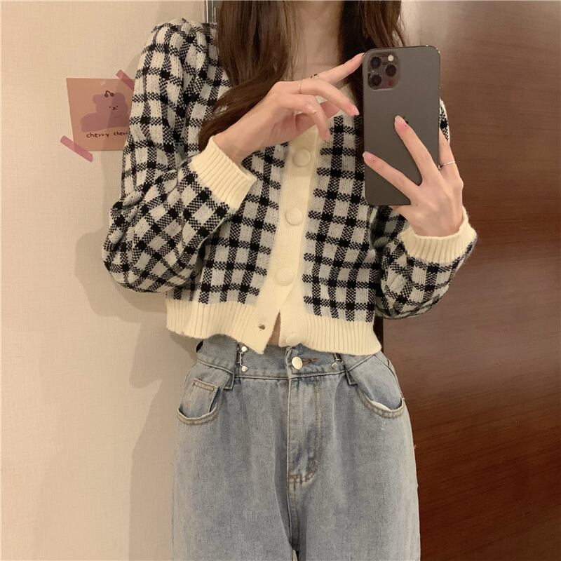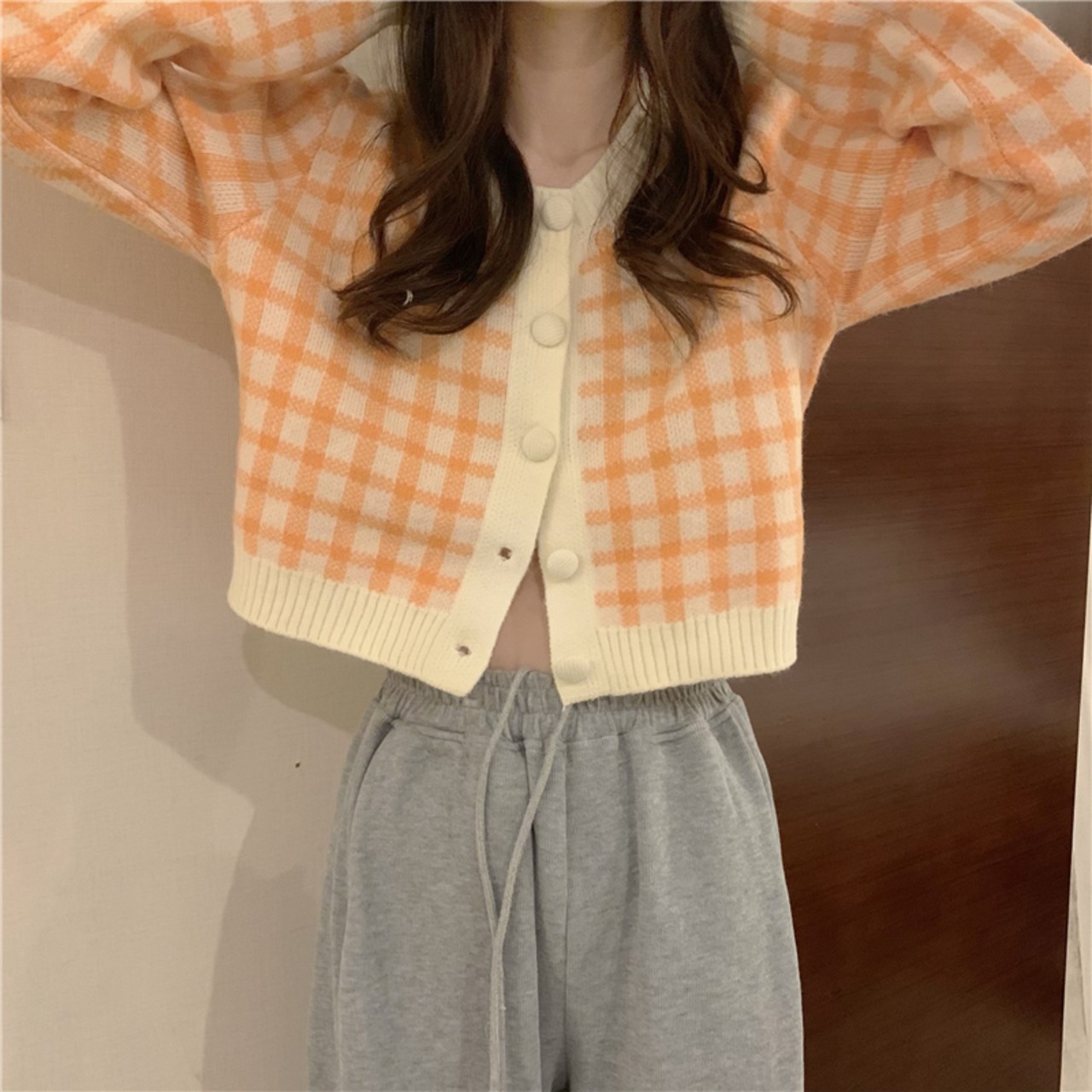 セーター カーディガン ショート丈 長袖 柄 チェック グレンチェック 春 秋 冬 ポケット 前開き 大人可愛い きれいめ シンプル 大人 上品 おしゃれ お洒落 大人可愛い 大人女子 こなれ感 ラフ キュート ガーリー ラウンドネック 袖あり 黒 ブラック 青 ブルー ピンク オレンジ アプリコット フリーサイズ 10代 20代 30代 OL 通勤 学生 通学 お出かけ 女子会 パーティー クリスマス バレンタイン 韓国 韓国系 オルチャン ファッション スタイル モテ 脚長 送料無料 インスタ映え | Rena 韓国ファッション レディースアパレル