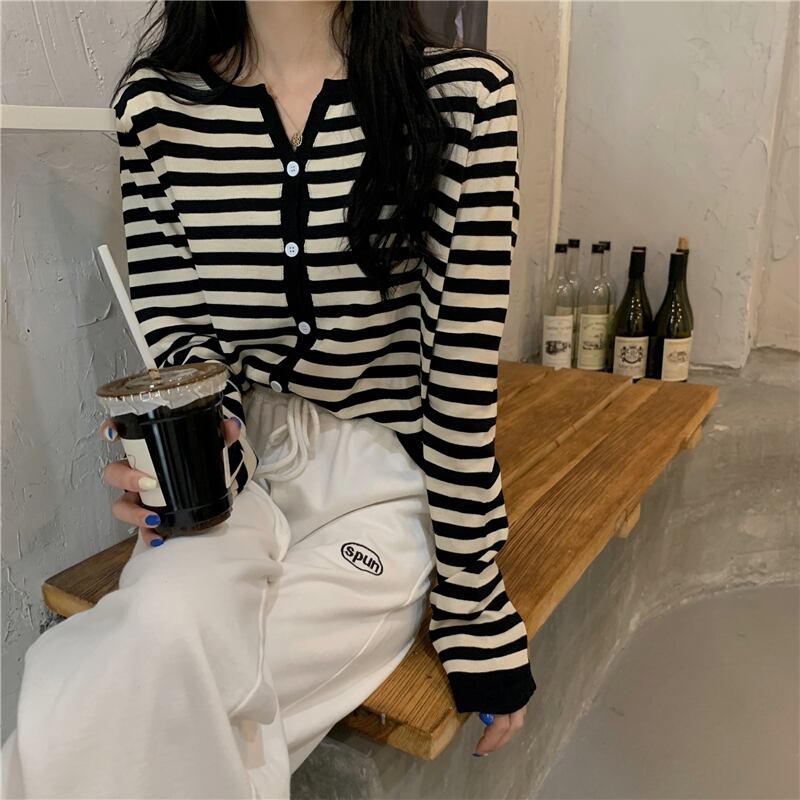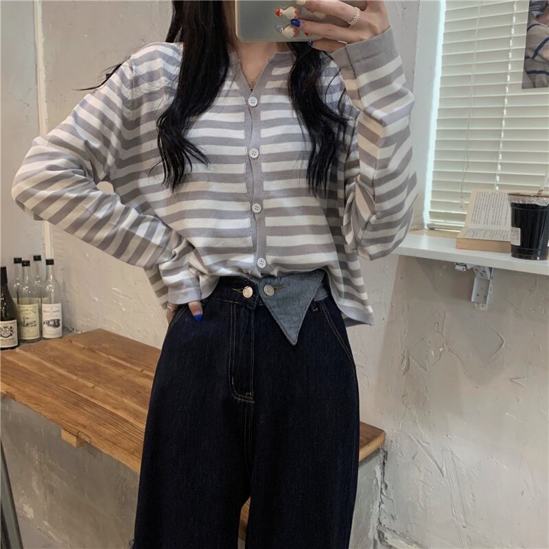 カーディガン 長袖 ボーダー 春 秋 冬 前開き かわいい 大人可愛い きれいめ シンプル カジュアル 大人 上品 おしゃれ 大人女子 こなれ感 黒 ブラック 灰色 グレー フリーサイズ ゆったり ゆる 10代 20代 30代 40代 女性用 オフィス ビジネス OL 通勤 学生 通学 デート お出かけ 公園デビュー 女子会 休日 着回し 普段使い 重ね着 オルチャン ファッション コーデ スタイル 定番 プチプラ 送料無料 | Rena 韓国ファッション レディースアパレル