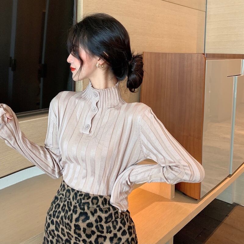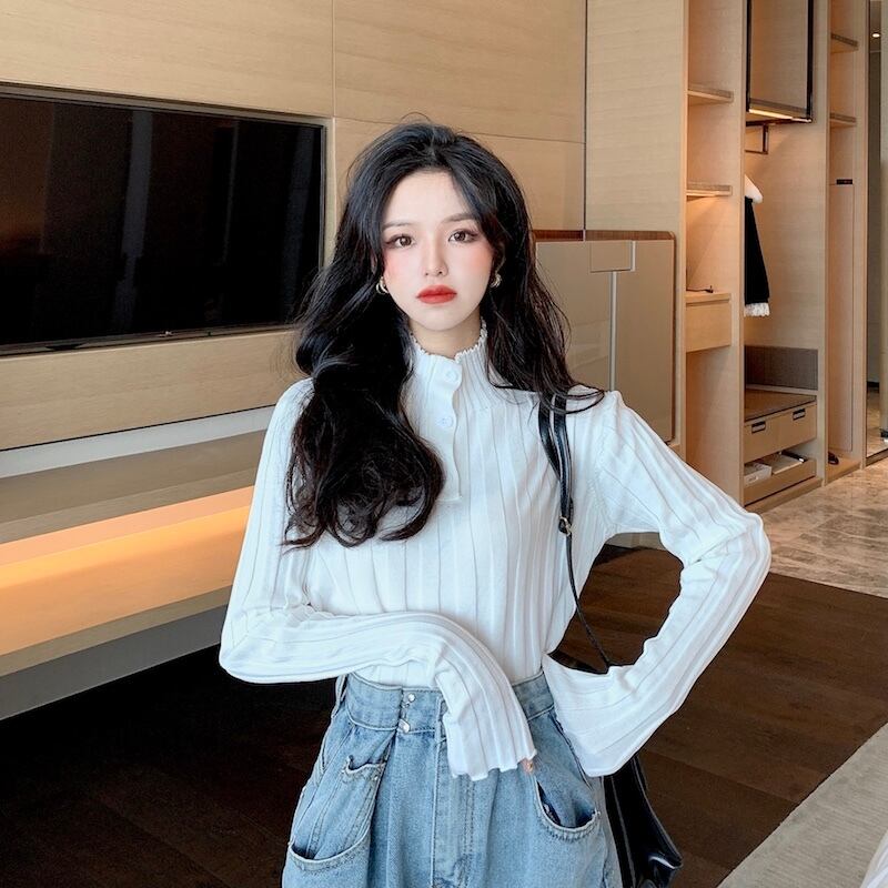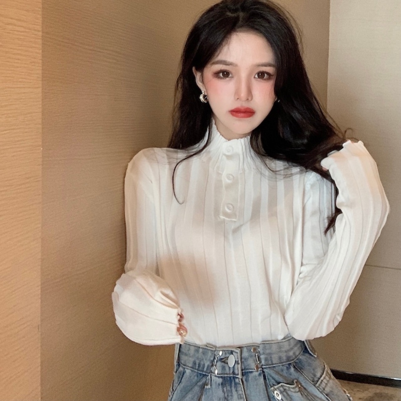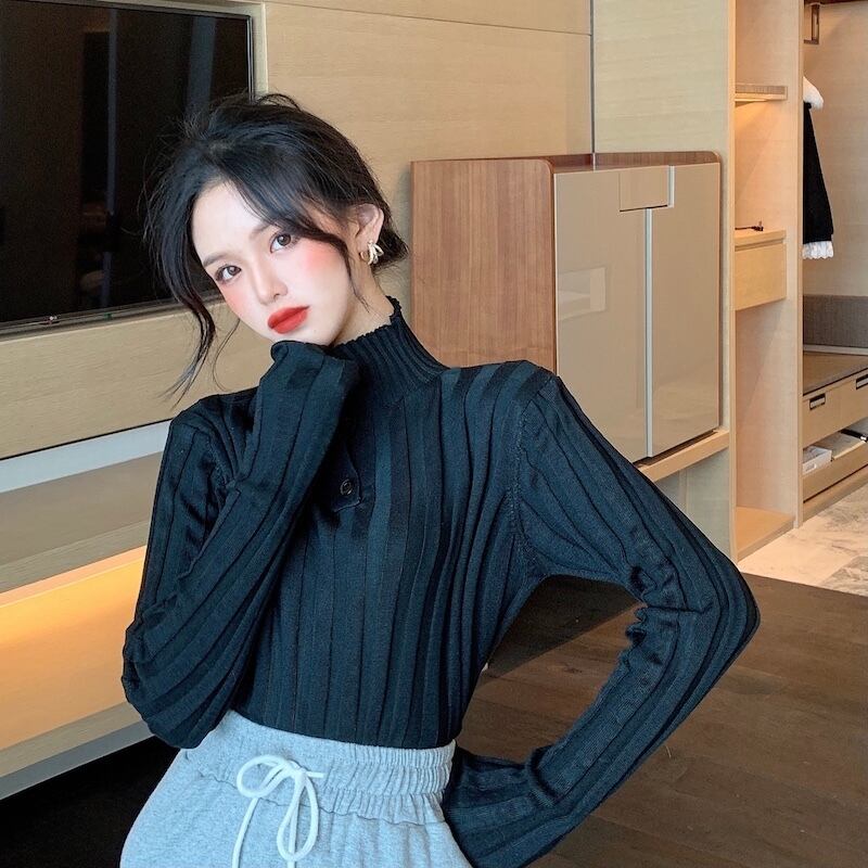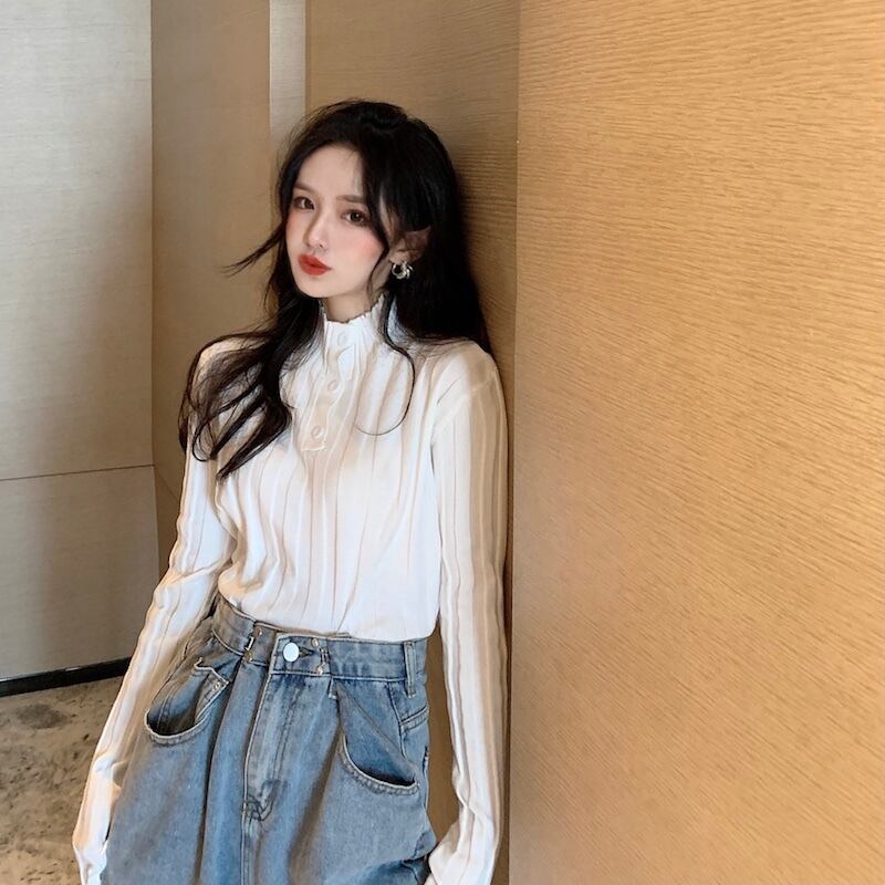 カットソー ニット 長袖 無地 秋 冬 スリム 細身 かわいい 大人可愛い きれいめ シンプル カジュアル 大人 上品 おしゃれ 大人女子 クール ハイネック 白トップス 白 ホワイト 黒 ブラック ベージュ フリーサイズ 10代 20代 30代 40代 50代 オフィス ビジネス OL 通勤 学生 通学 デート お出かけ 着回し 普段使い 重ね着 ファッション コーデ スタイル 防寒 プチプラ 送料無料 | Rena 韓国ファッション レディースアパレル