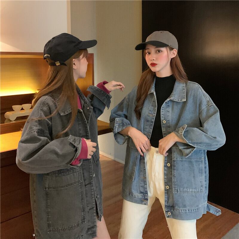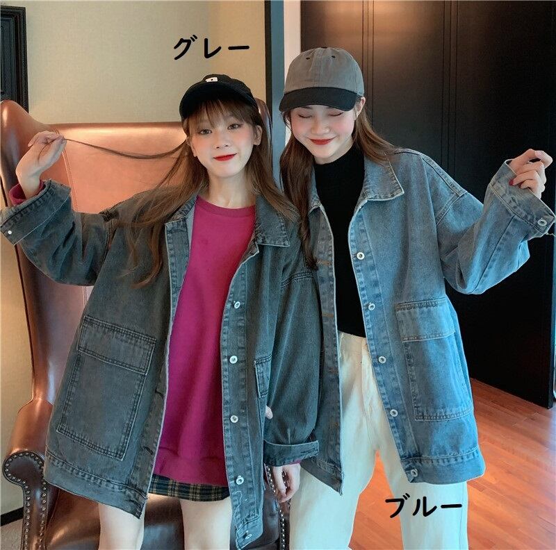 アウター レディース ジャケット 長袖 デニム 春 秋 冬 前開き かわいい シンプル カジュアル おしゃれ かっこいい こなれ感 ラフ メンズライク ボーイッシュ スポーティー 青 ブルー 灰色 グレー S M L XL 大きいサイズ ビッグサイズ ゆったり ゆる 10代 20代 30代 学生 通学 デート お出かけ 公園デビュー 休日 アウトドア 着回し 普段使い 重ね着 コーデ 楽ちん プチプラ 送料無料 | Rena 韓国ファッション レディースアパレル