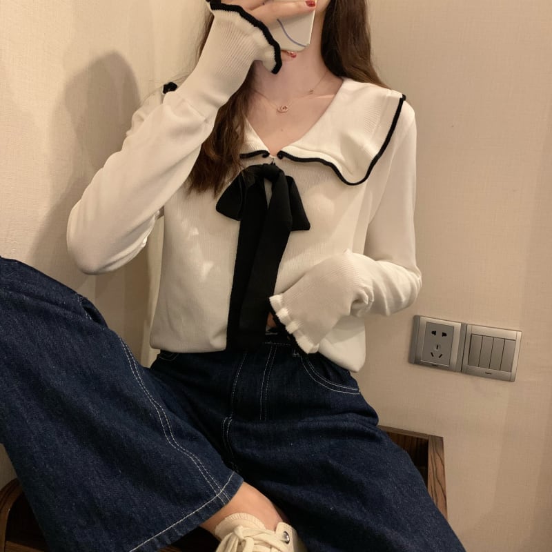 ブラウス 長袖 春 秋 冬 リボン かわいい 大人可愛い シンプル 大人 上品 おしゃれ 大人女子 とろみ感 襟付き 白トップス 白 ホワイト 黒 ブラック フリーサイズ ゆったり 10代 20代 30代 オフィス ビジネス OL 通勤 学生 通学 デート お出かけ 女子会 着回し 韓国系 オルチャン ファッション コーデ モテ プチプラ 送料無料 | Rena 韓国ファッション レディースアパレル