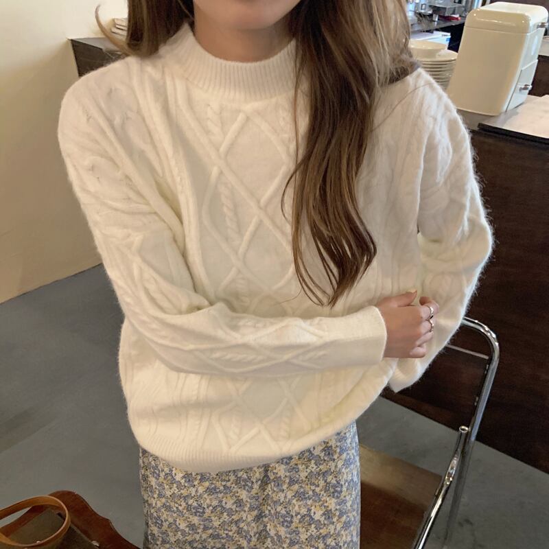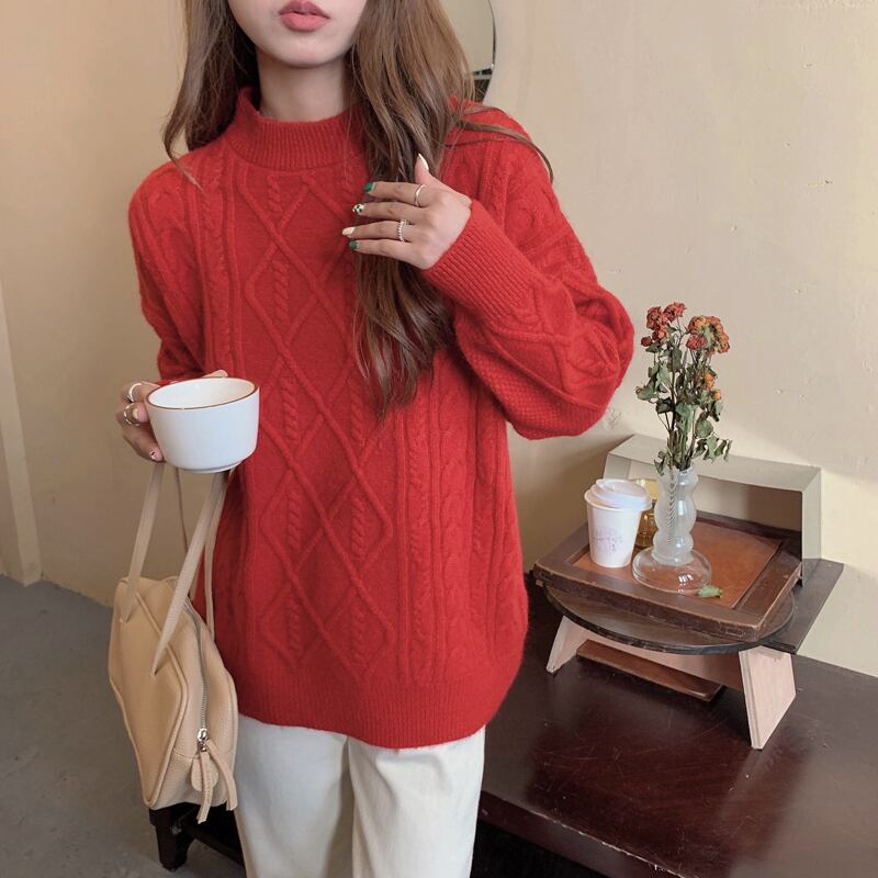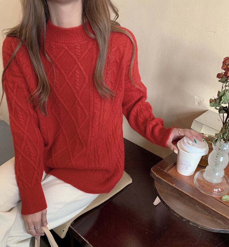 ニット セーター 長袖 無地 秋 冬 ケーブルニット かわいい 大人可愛い きれいめ シンプル カジュアル 大人 上品 おしゃれ 大人女子 こなれ感 白 ホワイト 赤 レッド カーキ イエロー ピンク カラバリ フリーサイズ 10代 20代 30代 40代 50代 OL 通勤 学生 通学 デート お出かけ 公園デビュー 女子会 お泊まり 休日 着回し 楽ちん あったか 定番 プチプラ 送料無料 | Rena 韓国ファッション レディースアパレル