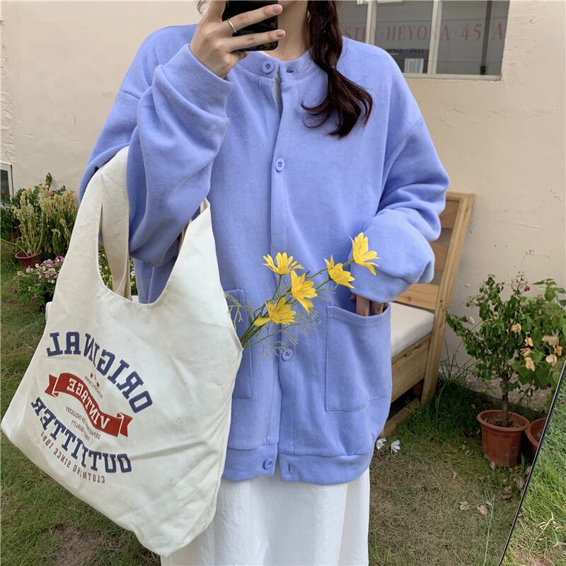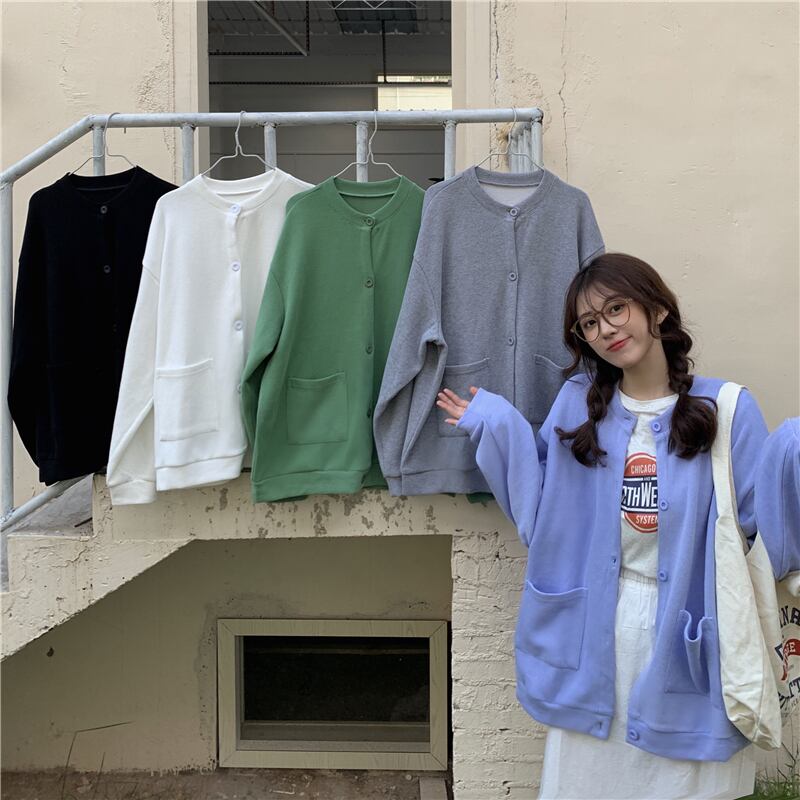 カーディガン 長袖 無地 春 秋 冬 前開き かわいい シンプル カジュアル 大人 おしゃれ 大人女子 こなれ感 ラフ メンズライク ボーイッシュ スポーティー キュート ガーリー ラウンドネック 白トップス 白 ホワイト 黒 ブラック 青 ブルー 緑 グリーン 灰色 グレー カラバリ 大きいサイズ フリーサイズ 大きめ ビッグサイズ ゆったり ゆる 10代 20代 30代 学生 通学 お出かけ 公園デビュー 女子会 着回し 普段使い 楽ちん プチプラ 送料無料 | Rena 韓国ファッション レディースアパレル