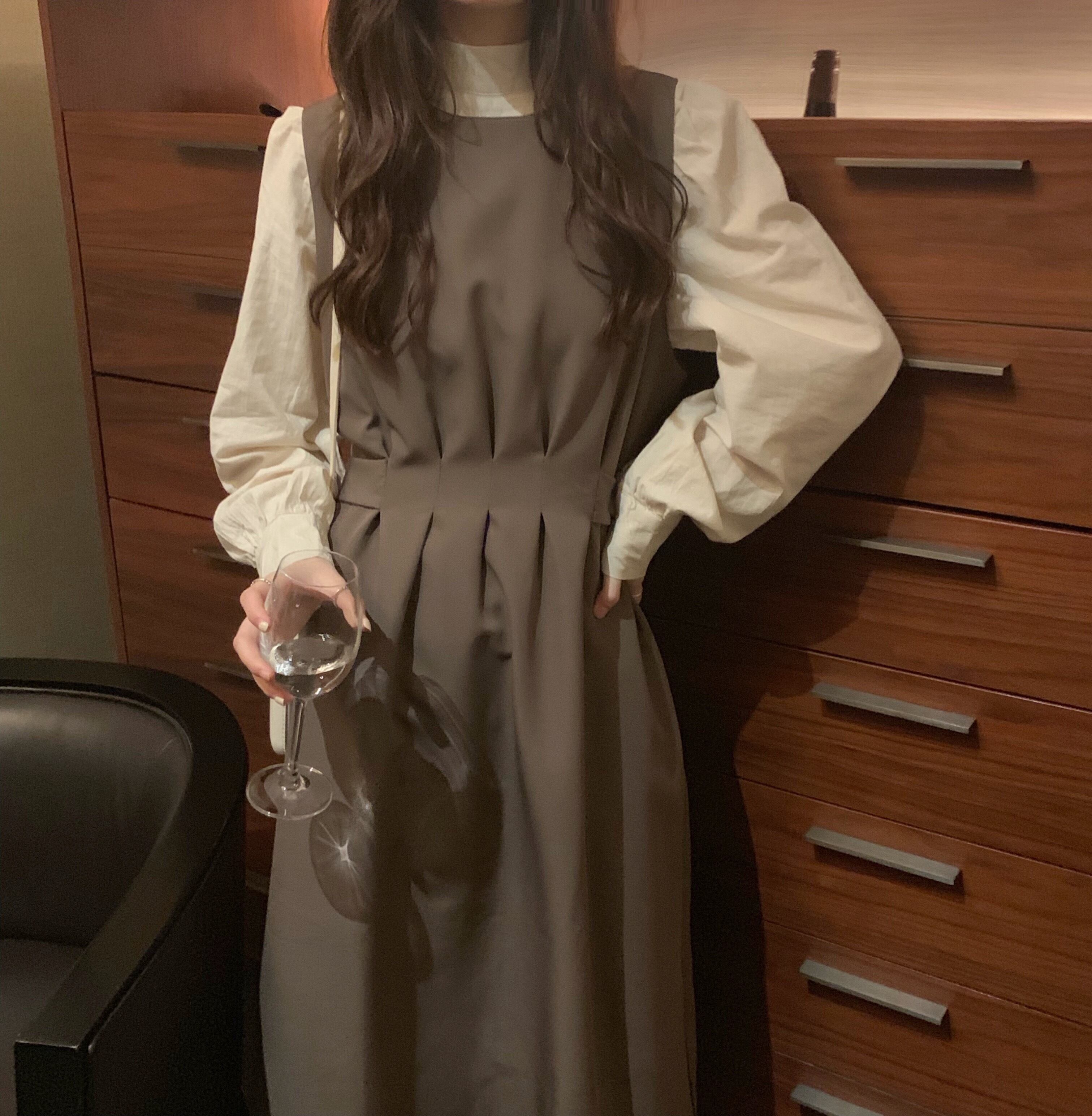 ワンピース Aラインワンピース ミモレ丈 ノースリーブ 無地 秋 Aライン ギャザー ウエストマーク 大人可愛い きれいめ シンプル 上品 おしゃれ レトロ 大人女子 キュート ガーリー エレガント ラウンドネック 黒 ブラック 茶色 ブラウン 10代 20代 30代 OL 通勤 通学 デート お出かけ 女子会 着回し 重ね着 コーデ スタイル モテ 送料無料 | Rena 韓国ファッション レディースアパレル