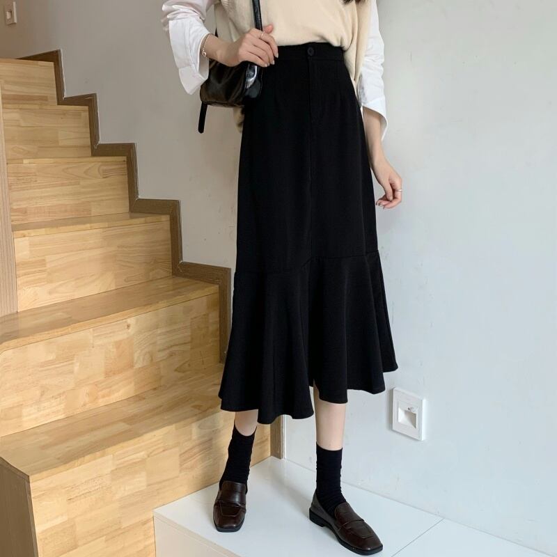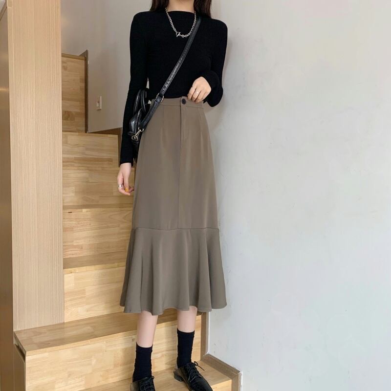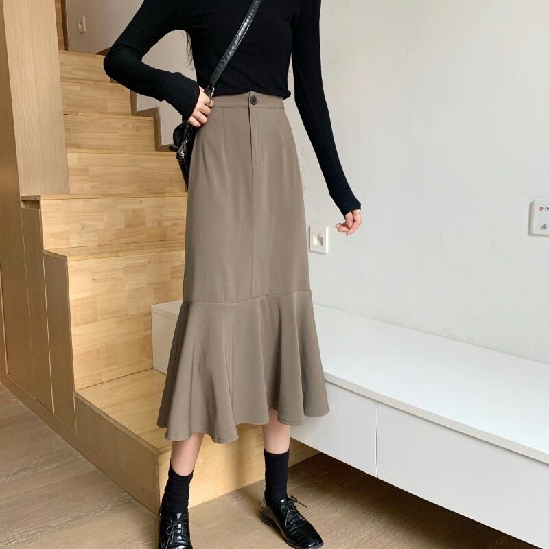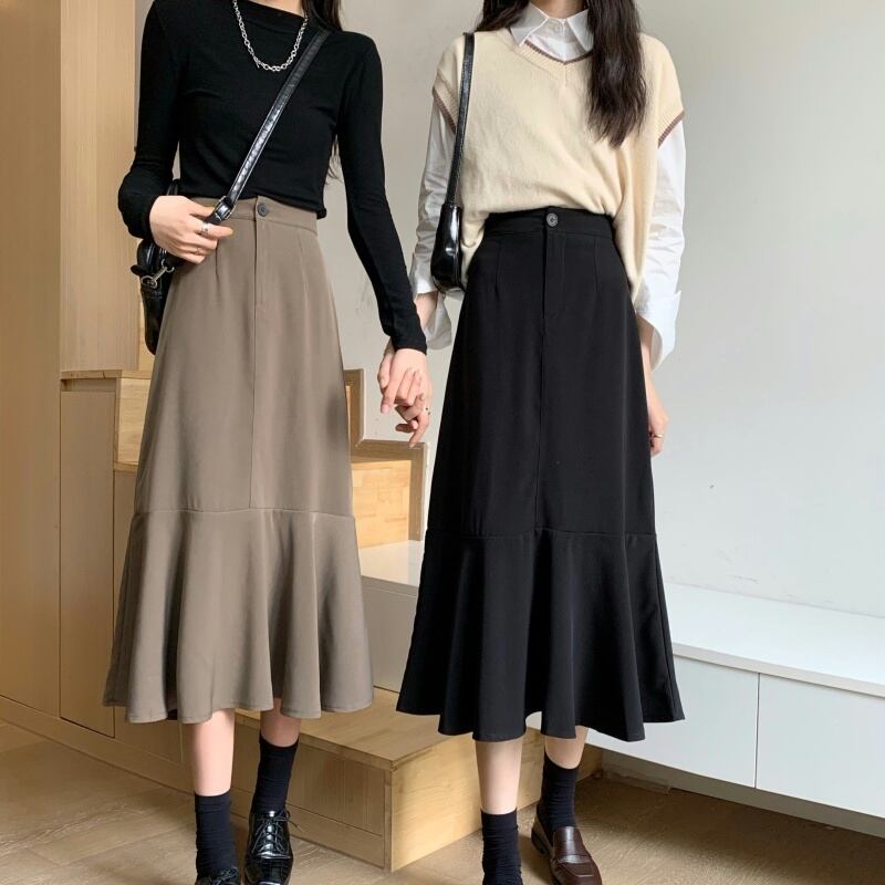 スカート レディース ロングスカート ミディアム丈 無地 秋 冬 セミフレア スリム Aライン かわいい 大人可愛い きれいめ シンプル カジュアル 大人 上品 おしゃれ お洒落 大人可愛い 大人女子 モダン 7分丈 黒 ブラック 茶色 ブラウン S M L 20代 30代 女性用 オフィス ビジネス 学生 デート お出かけ 公園デビュー 女子会 休日 着回し 韓国 韓国系 オルチャン ファッション コーデ スタイル モテ プレゼント 新作 定番 送料無料 トレンド 流行 インスタ映え | Rena 韓国ファッション レディースアパレル
