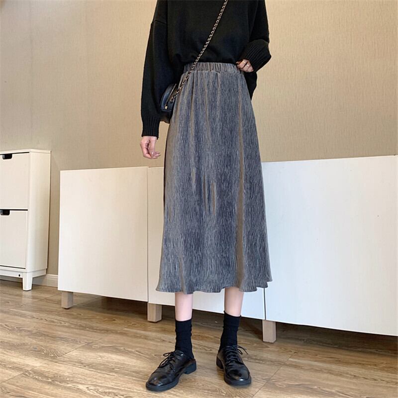 スカート レディース Aラインスカート ミディアム丈 無地 秋 冬 セミフレア Aライン 裾フレア かわいい 大人可愛い きれいめ シンプル カジュアル 大人 上品 おしゃれ お洒落 大人可愛い 大人女子 7分丈 ポリエステル 黒 ブラック 灰色 グレー 大人カラー ベイクドカラー ゆったり ワンサイズ 20代 30代 女の子 通勤 学生 通学 デート お出かけ 女子会 休日 着回し 普段使い 韓国 韓国系 オルチャン ファッション コーデ スタイル モテ 送料無料 トレンド 流行 インスタ映え | Rena 韓国ファッション レディースアパレル