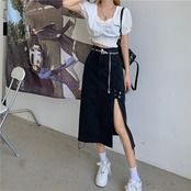 スカート レディース デニムスカート ミディアム丈 無地 春 夏 秋 冬 Iライン かわいい 大人可愛い きれいめ シンプル カジュアル 大人 上品 おしゃれ お洒落 かっこいい レトロ 大人可愛い 大人女子 キュート 個性的 抜け感 7分丈 ブルーデニム 黒 ブラック 青 ブルー S M L XL 20代 30代 学生 通学 デート お出かけ 女子会 休日 着回し 普段使い 韓国 韓国系 オルチャン ファッション コーデ スタイル モテ 定番 プチプラ 送料無料 トレンド 流行 インスタ映え | Rena 韓国ファッション レディースアパレル