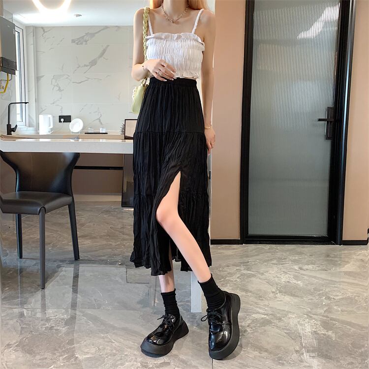 プリーツで動きやすく、スリットも入っていてセクシーな一面も。