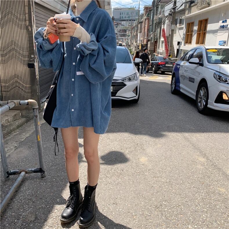 シャツ 長袖 無地 秋 冬 ポケット 前開き かわいい シンプル カジュアル おしゃれ お洒落 こなれ感 ラフ メンズライク マニッシュ キュート ルーズ モード系 襟付き コーデュロイ レッド ブルー S M L 10代 20代 30代 女性用 お出かけ 公園デビュー 休日 アウトドア 着回し 普段使い 重ね着 ファッション コーデ スタイル | Rena 韓国ファッション レディースアパレル