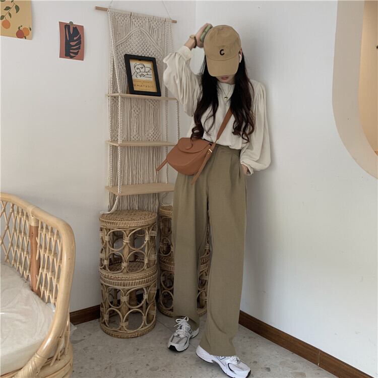 シャツ ワイドパンツ 長袖 秋 ワイド かわいい 大人可愛い きれいめ 大人 おしゃれ お洒落 大人可愛い 大人女子 袖あり 上下セット ベージュ カーキ 10代 20代 30代 デート お出かけ 女子会 お泊まり 休日 ファッション コーデ スタイル モテ 送料無料 ゆったり | Rena 韓国ファッション レディースアパレル