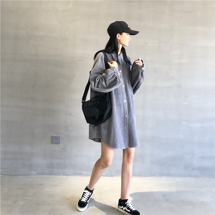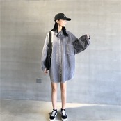 アウター レディース シャツ 膝上 長袖 無地 春 秋 冬 かわいい 大人可愛い シンプル カジュアル おしゃれ お洒落 かっこいい 大人可愛い 大人女子 ラフ ボーイッシュ ガーリー 抜け感 襟付き 袖あり 青 ブルー 灰色 グレー 大きいサイズ 大きい 大きめ ゆったり ゆる 10代 20代 30代 デート お出かけ 公園デビュー 女子会 休日 アウトドア イベント 着回し ファッション コーデ スタイル 体系カバー 送料無料 ゆったり | Rena 韓国ファッション レディースアパレル