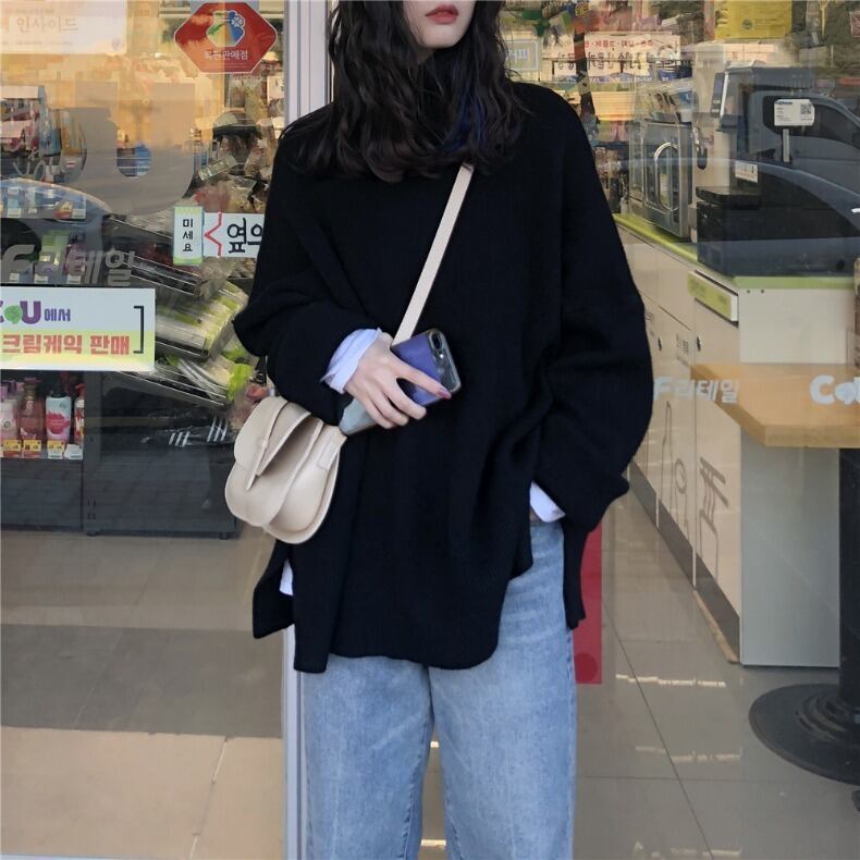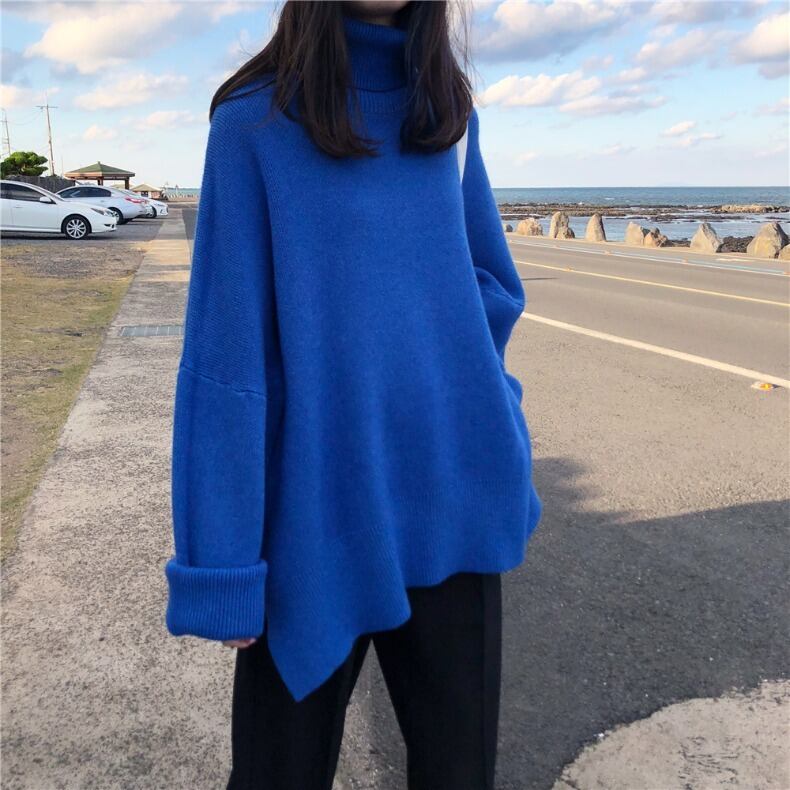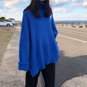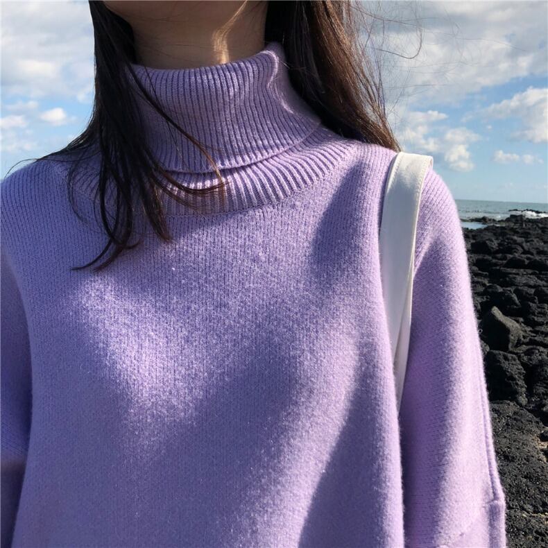 ニット セーター 長袖 無地 秋 冬 きれいめ シンプル カジュアル 大人 上品 おしゃれ 大人女子 こなれ感 ラフ マニッシュ クール とろみ感 タートルネック 黒 ブラック 青 ブルー 紫 パープル カラバリ アプリコット フリーサイズ ビッグサイズ ゆったり ゆる 10代 20代 30代 40代 50代 OL 通勤 学生 通学 デート お出かけ 公園デビュー 女子会 お泊まり 休日 旅行 着回し 普段使い スタイル 楽ちん あったか 暖かい モテ 体系カバー 定番 プチプラ 送料無料 | Rena 韓国ファッション レディースアパレル