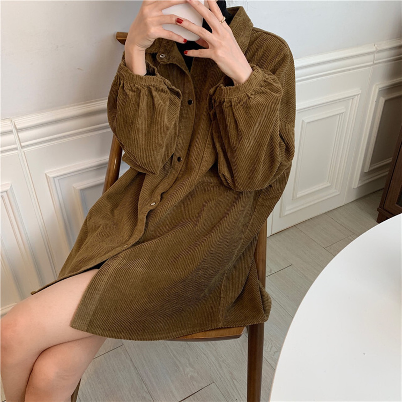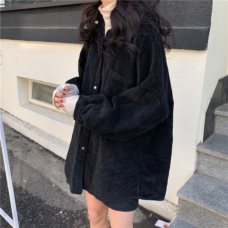 シャツ ブラウス 長袖 無地 秋 冬 前開き 大人可愛い シンプル カジュアル 大人 おしゃれ かっこいい 大人女子 こなれ感 ラフ メンズライク マニッシュ ボーイッシュ コーデュロイ 黒 ブラック 茶色 ブラウン ピンク アプリコット フリーサイズ ビッグサイズ ゆったり 10代 20代 30代 40代 学生 通学 デート お出かけ 公園デビュー 女子会 休日 着回し 普段使い 韓国系 ファッション あったか プチプラ 送料無料 | Rena 韓国ファッション レディースアパレル