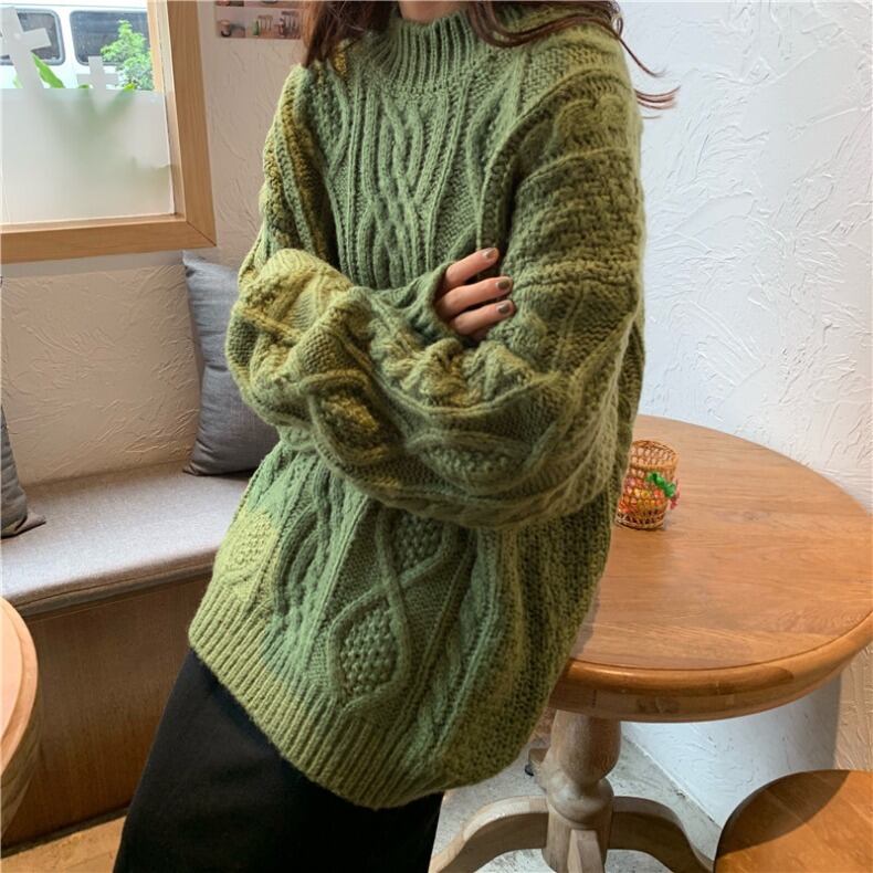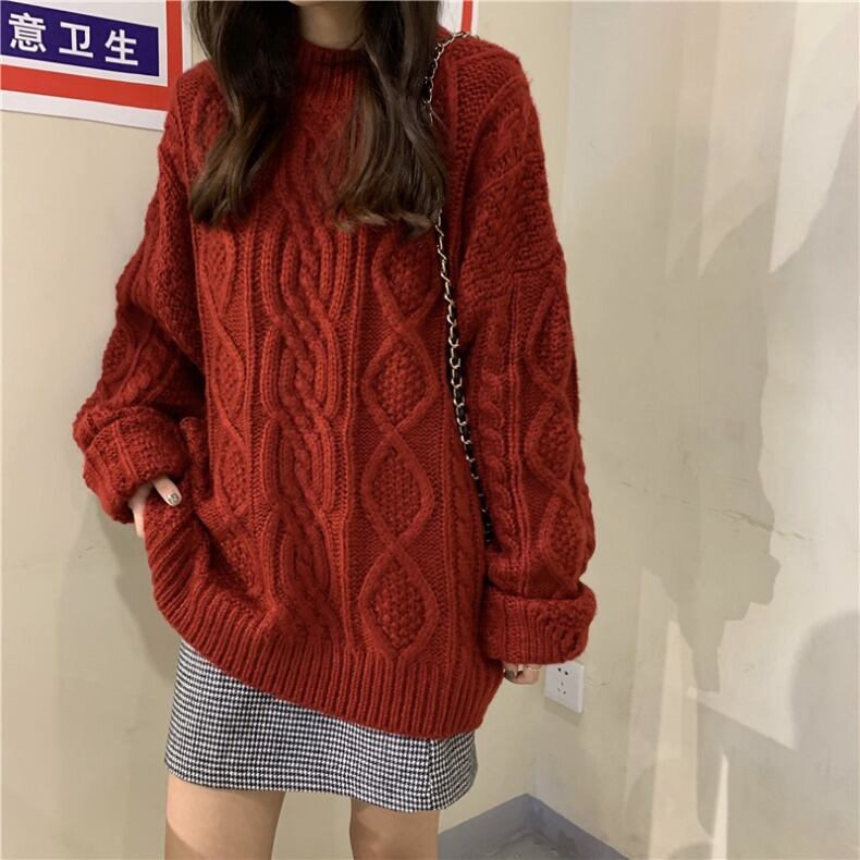ニット セーター 長袖 アーガイルチェック 秋 冬 大人可愛い おしゃれ 大人女子 こなれ感 ガーリー ルーズ ハイネック ゆる 赤 レッド 緑 グリーン アプリコット 通勤 学生 通学 デート お出かけ 公園デビュー 女子会 休日 普段使い あったか ダメージ 送料無料 | Rena 韓国ファッション レディースアパレル