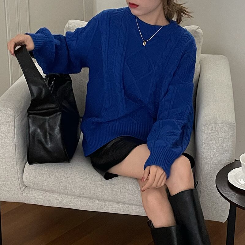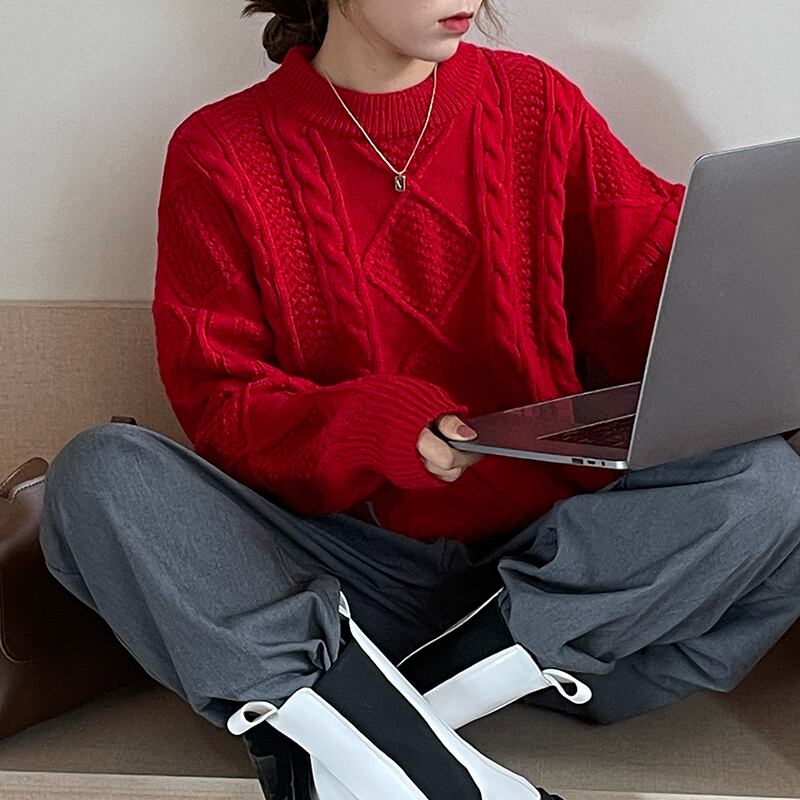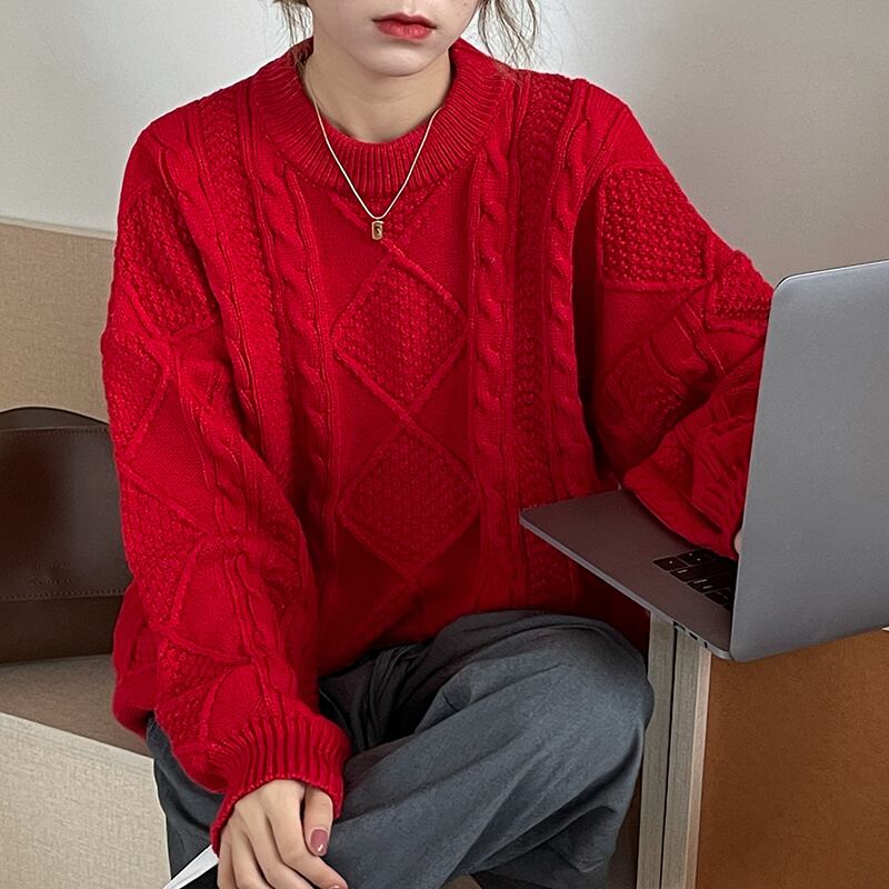 ニット セーター 春 秋 冬 かわいい 大人可愛い きれいめ シンプル 大人 上品 おしゃれ お洒落 かっこいい レトロ 大人女子 こなれ感 ラフ ガーリー クルーネック 赤 レッド 青 ブルー 10代 20代 30代 40代 50代 60代 OL 通勤 学生 通学 デート お出かけ 公園デビュー 女子会 休日 普段使い 楽ちん あったか 暖かい モテ 送料無料 | Rena 韓国ファッション レディースアパレル