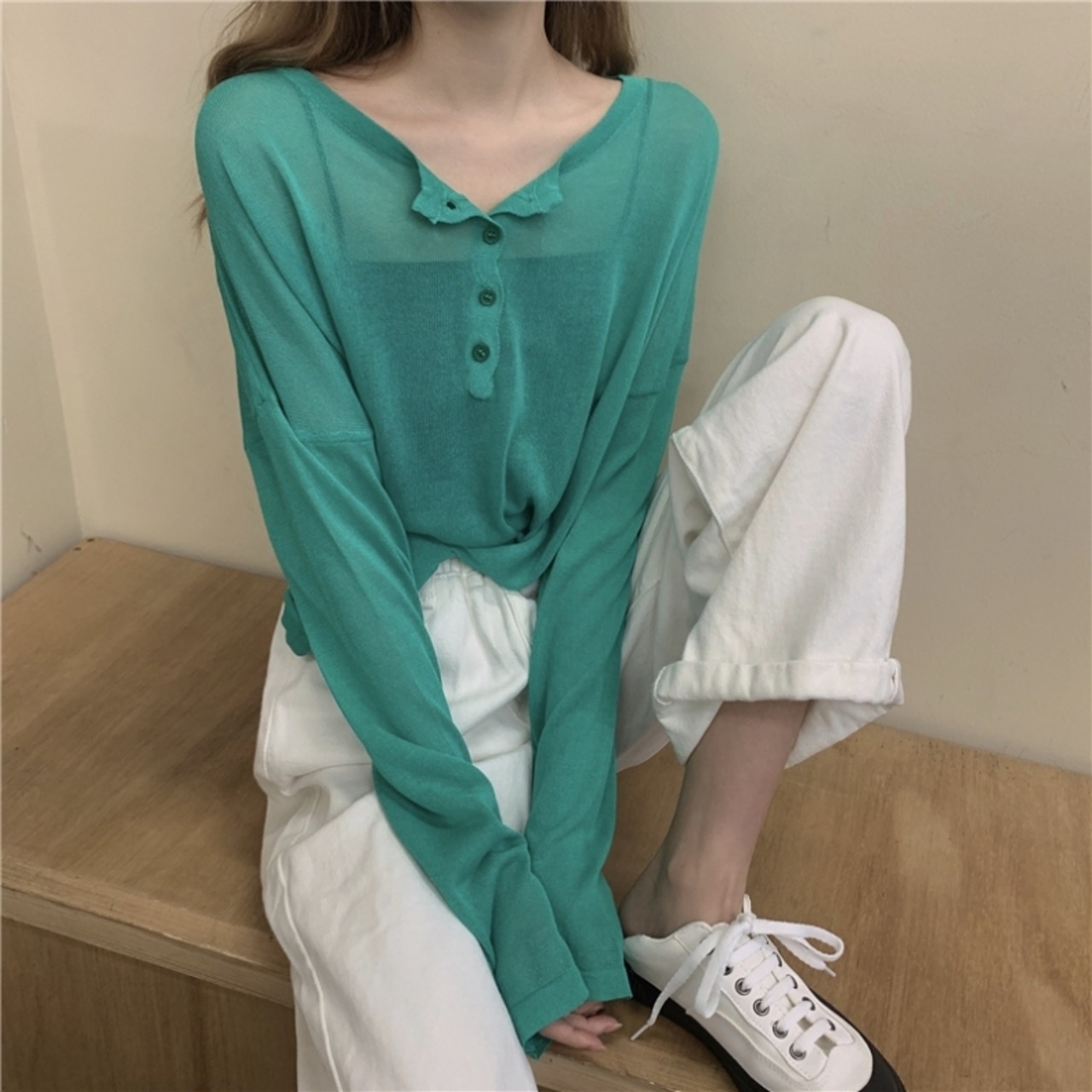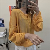 シャツ カットソー 長袖 無地 春 夏 秋 前開き 透け感 シースルー かわいい 大人可愛い きれいめ シンプル カジュアル 上品 おしゃれ かっこいい 大人女子 こなれ感 ルーズ セクシー エレガント Uネック 襟なし 白 ホワイト 黒 ブラック 緑 グリーン オレンジ 10代 20代 OL 通勤 学生 通学 デート お出かけ 公園デビュー 女子会 お泊まり 休日 アウトドア イベント リゾート 旅行 着回し 普段使い 重ね着 送料無料 | Rena 韓国ファッション レディースアパレル