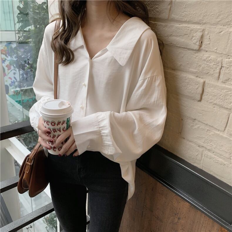 シャツ ブラウス ロング丈 長袖 無地 春 夏 秋 冬 前開き きれいめ シンプル 大人 上品 おしゃれ お洒落 かっこいい 大人女子 エレガント Vネック 襟付き 白 ホワイト 黒 ブラック 大きい 大きめ ビッグサイズ ゆったり ゆる 10代 20代 30代 40代 オフィス ビジネス OL 通勤 学生 通学 デート お出かけ 女子会 着回し 普段使い ファッション コーデ スタイル モテ 体系カバー 送料無料 | Rena 韓国ファッション レディースアパレル