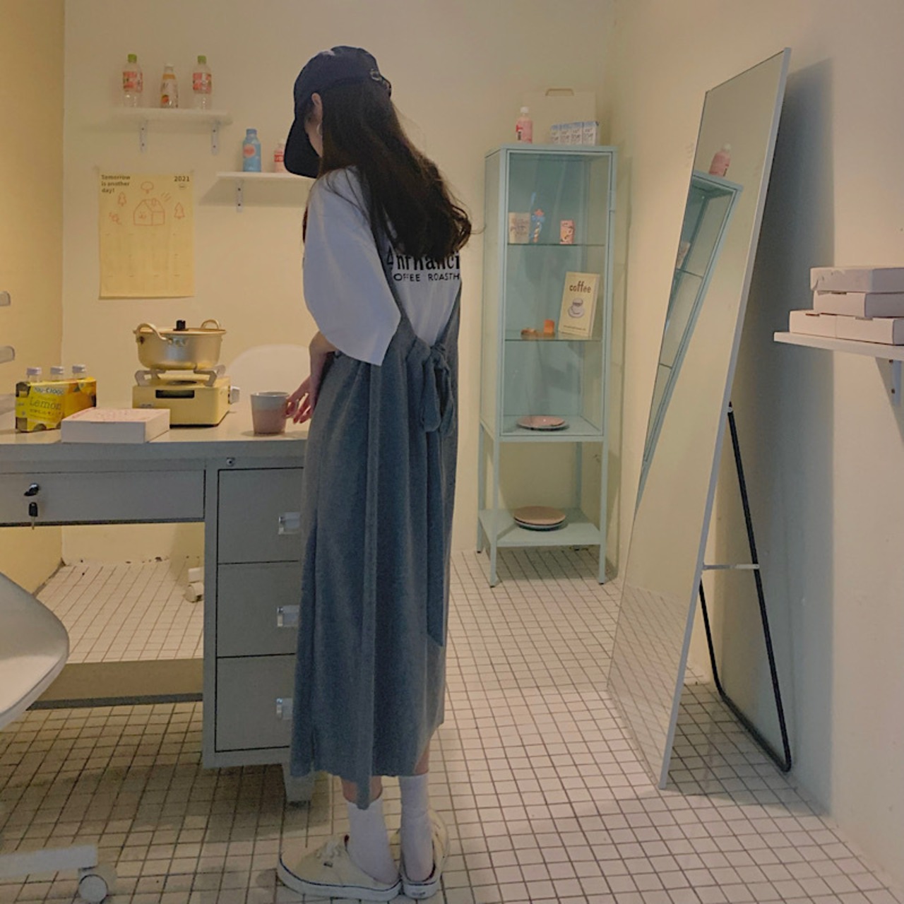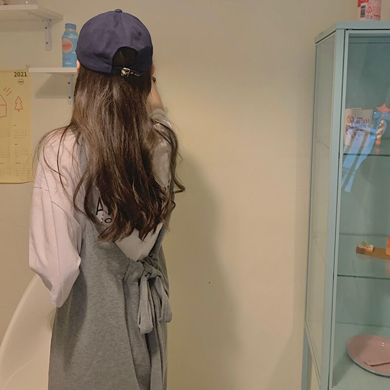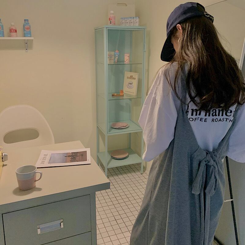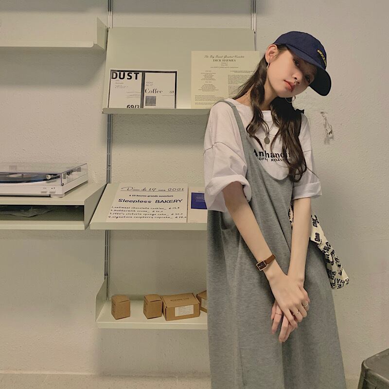 ダボっと着るのが可愛い、ルーズなイメージのロングワンピースとTシャツのセットです。