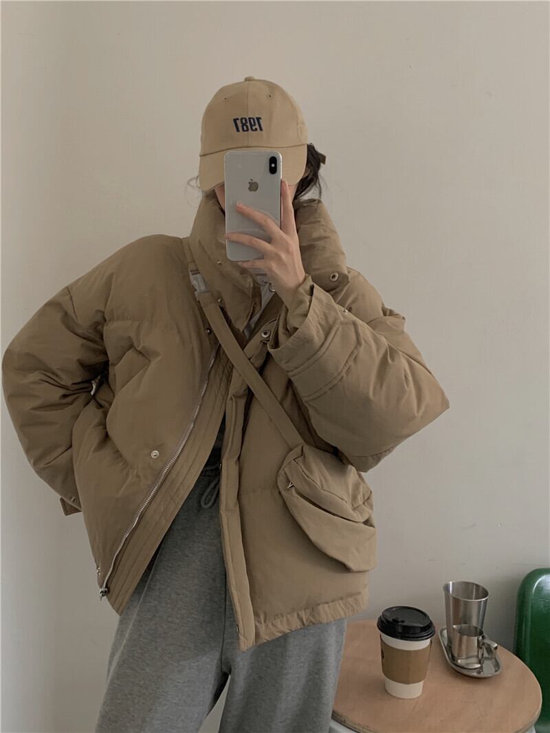 アウター レディース ジャケット ダウンコート 長袖 無地 冬 もこもこ モコモコ シンプル カジュアル メンズライク マニッシュ もこもこアウター ダウン 茶色 ブラウン 10代 20代 30代 40代 50代 通勤 通学 デート お出かけ 公園デビュー 女子会 お泊まり アウトドア 普段使い ファッション コーデ スタイル あったか 暖かい 防寒 モテ 送料無料 | Rena 韓国ファッション レディースアパレル