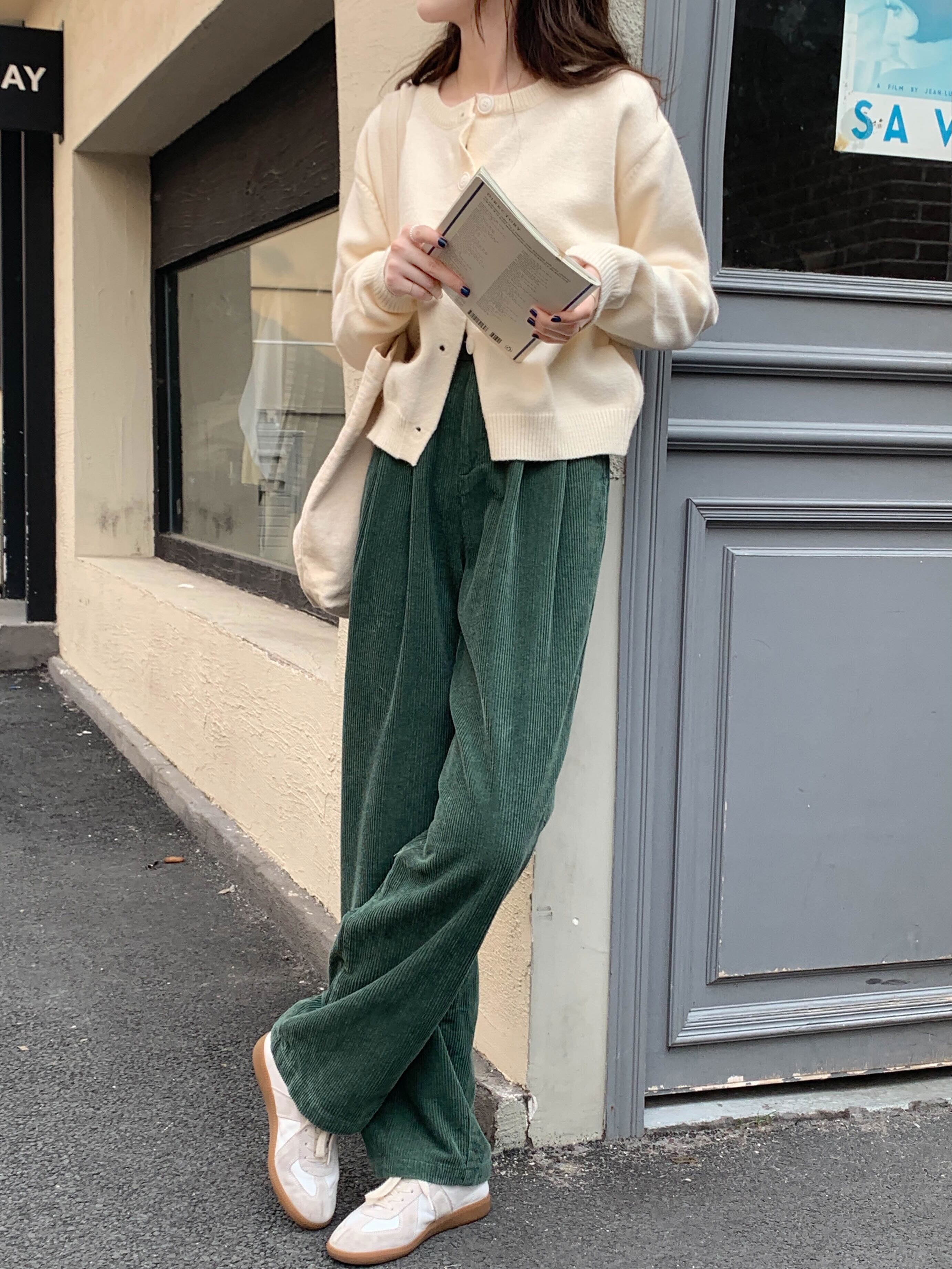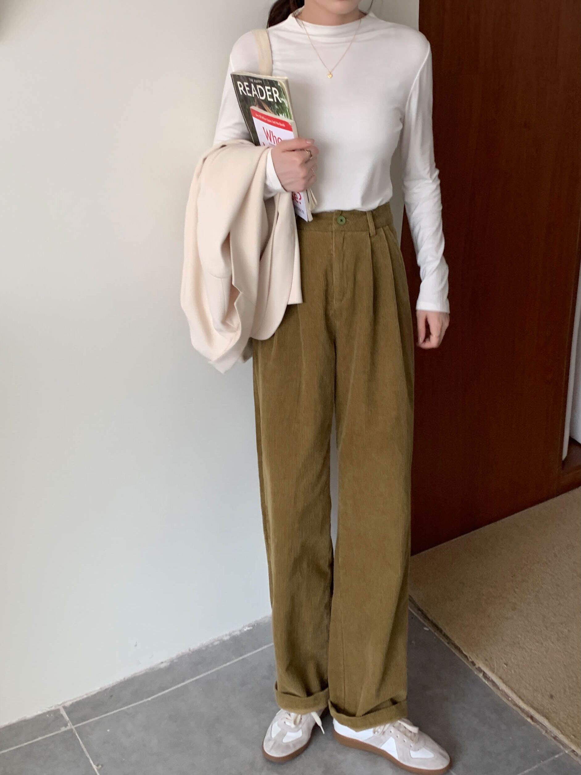 秋冬のコーデに活躍しそうなコーデュロイ生地で、ストレートラインで足元はダボっと余裕があります。