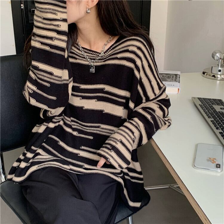 ニット セーター 長袖 セブラ柄 春 秋 冬 きれいめ 大人 おしゃれ お洒落 かっこいい 大人女子 ラフ キュート ルーズ 個性的 セクシー 黒 ブラック ベージュ 大きめ ゆったり ゆる 10代 20代 30代 40代 デート お出かけ 公園デビュー 女子会 お泊まり ファッション コーデ スタイル モテ 送料無料 | Rena 韓国ファッション レディースアパレル