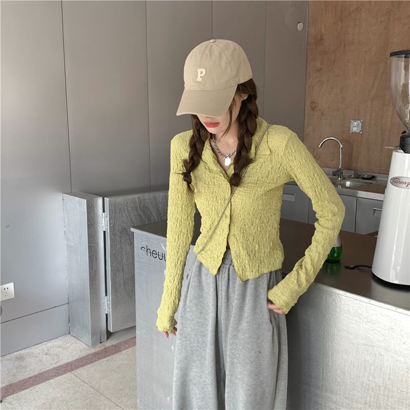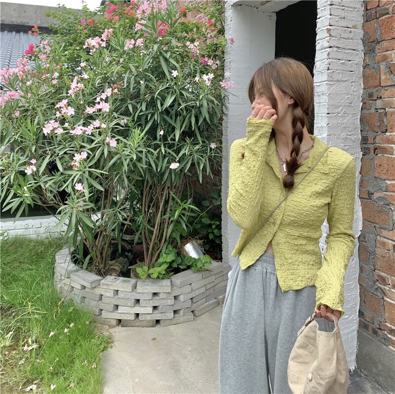 シャツ ブラウス ショート丈 長袖 春 夏 秋 前開き かわいい 大人可愛い きれいめ シンプル カジュアル 上品 おしゃれ お洒落 かっこいい ラフ ガーリー エレガント Vネック 襟付き 白 ホワイト 緑 グリーン 10代 20代 オフィス OL 通勤 学生 通学 デート お出かけ 公園デビュー 女子会 着回し ファッション コーデ スタイル 楽ちん 送料無料 | Rena 韓国ファッション レディースアパレル