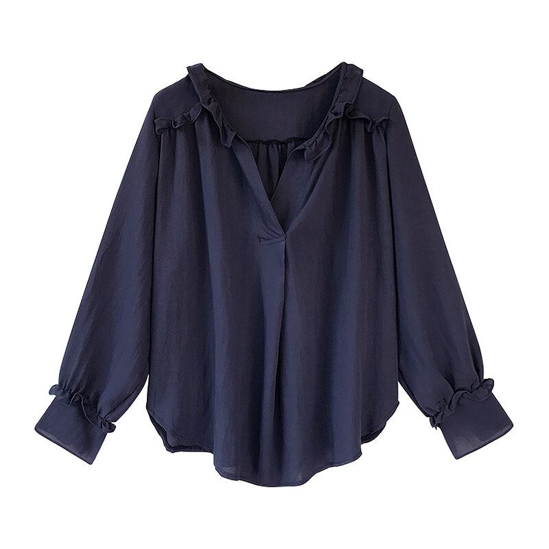 トップス シャツ ブラウス 長袖 無地 春 秋 きれいめ シンプル 大人 おしゃれ お洒落 大人女子 こなれ感 ラフ 抜け感 Vネック 襟なし 袖あり 白 ホワイト イエロー ネイビー 大人カラー M L XL 2XL 3XL 4XL ゆる 10代 20代 30代 40代 50代 ママ OL 通勤 学生 通学 公園デビュー 女子会 休日 イベント 着回し 普段使い 重ね着 韓国 オルチャン ファッション コーデ スタイル あったか 体系カバー トレンド 流行 インスタ映え ゆったり 送料無料 | Rena 韓国ファッション レディースアパレル