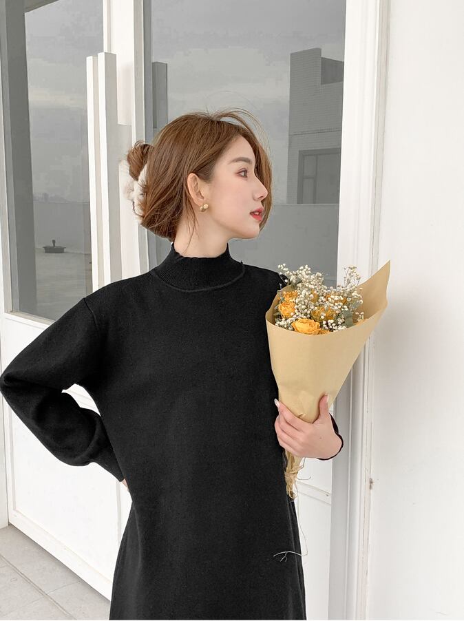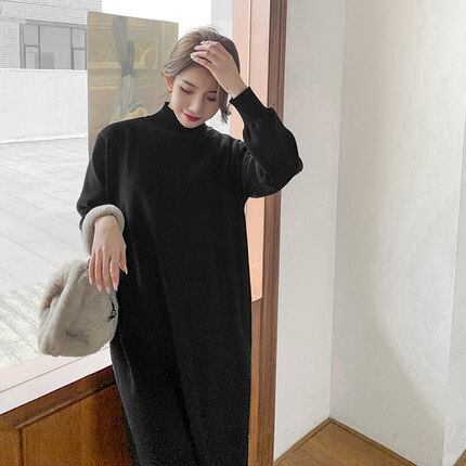 ワンピース ニット ニットワンピース 膝丈 長袖 無地 春 秋 冬 ストレート かわいい 大人可愛い きれいめ シンプル 大人 上品 おしゃれ お洒落 かっこいい ラフ ガーリー ハイネック 黒 ブラック S M L XL 2XL 3XL 4XL 10代 20代 30代 40代 OL 通勤 学生 通学 デート お出かけ 公園デビュー 女子会 着回し 普段使い ファッション コーデ スタイル 楽ちん あったか モテ 送料無料 | Rena 韓国ファッション レディースアパレル