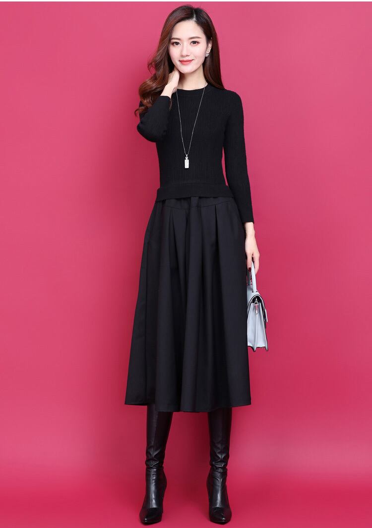 セットアップ ニット Aラインスカート ひざ下 長袖 無地 春 秋 冬 ストレート かわいい 大人可愛い きれいめ シンプル 大人 上品 おしゃれ お洒落 かっこいい 大人女子 ラフ ガーリー Uネック 上下セット 2点セット ツーピース お得 黒 ブラック 赤 レッド 灰色 グレー S M L XL 10代 20代 30代 OL 通勤 学生 通学 デート お出かけ 公園デビュー 女子会 お泊まり 着回し 普段使い ファッション コーデ スタイル モテ 送料無料 | Rena 韓国ファッション レディースアパレル