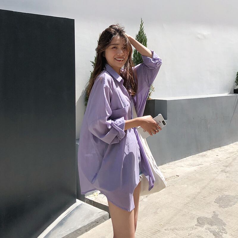 シャツ ブラウス 長袖 無地 デニム 刺繍 イチゴ 春 秋 シフォン 前開き かわいい 大人可愛い きれいめ シンプル カジュアル おしゃれ お洒落 レトロ アジアン こなれ感 ラフ 襟付き 白 ホワイト 紫 パープル S M L XL 2XL 大きい 大きめ ビッグサイズ ゆったり ゆる 10代 20代 OL 通勤 学生 通学 デート お出かけ 公園デビュー 女子会 休日 着回し 普段使い 重ね着 ファッション コーデ スタイル モテ 送料無料 | Rena 韓国ファッション レディースアパレル