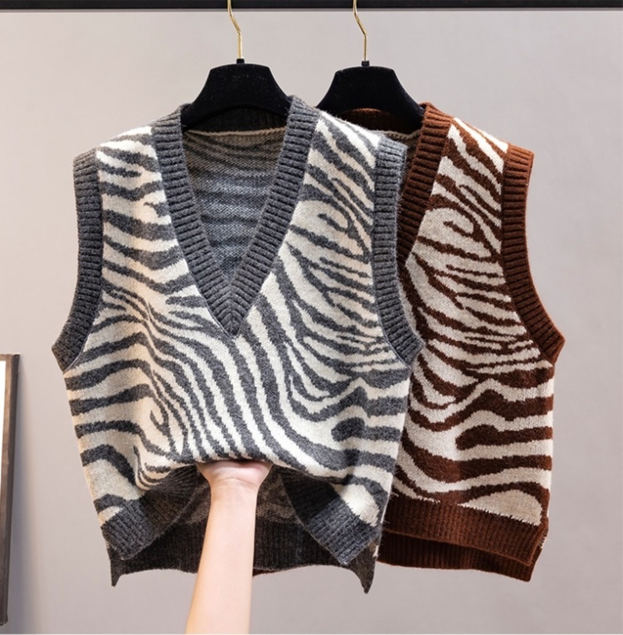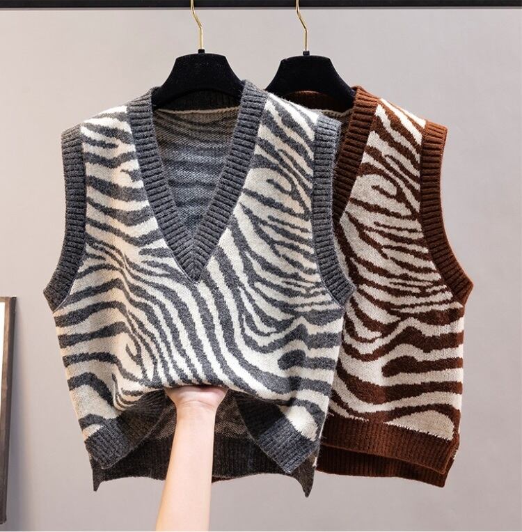 ニットベストにありそうでなかったゼブラ柄で、カラーも3色あるのが嬉しいポイント。